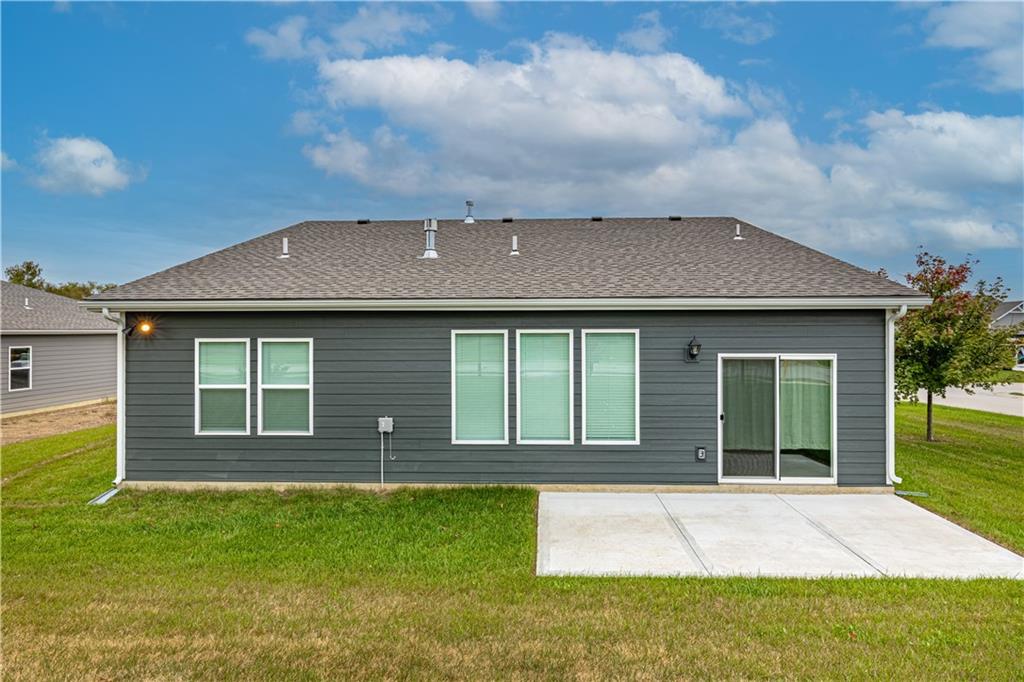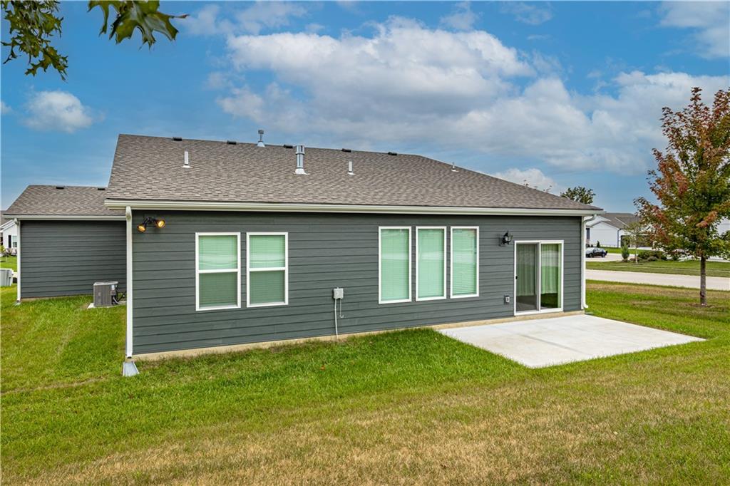 Welcome home to modern comfort and thoughtful design in this newly built home. Sitting gracefully on a corner lot within a cul-de-sac and accented with charming stone details, this 3-bedroom, 2-bath home feels bright, open, and inviting from the moment you step inside. Luxury vinyl plank flooring extends throughout the main living spaces, leading you into a spacious open-concept layout that’s perfect for everyday living and easy entertaining. The kitchen, dining, and living areas flow seamlessly together, creating the ideal spot to gather with friends, share a meal, or catch the next Chiefs game by the cozy fireplace. The kitchen itself shines with quartz countertops, crisp white cabinetry, a generous center island, and a walk-in pantry that makes staying organized effortless. Set apart at the rear of the home, the primary suite serves as your personal haven, featuring a roomy layout, walk-in closet, and a sleek en-suite bath with a walk-in shower. The two additional bedrooms at the front of the home offer endless possibilities — from a cozy guest retreat to a quiet home office or flex space for whatever your days demand. You’ll also appreciate the spacious laundry room, conveniently located near the bedrooms yet tucked out of sight, keeping household chores practical without disrupting the home’s flow. A 3-car garage provides plenty of storage, while the exterior’s curb appeal and quality craftsmanship make this home stand out. Come see how this beautifully designed home blends comfort, style, and functionality — it just might be exactly what you’ve been looking for. *Taxes in MLS was based off raw land. Taxes will be higher, but we don't know what that number is yet.