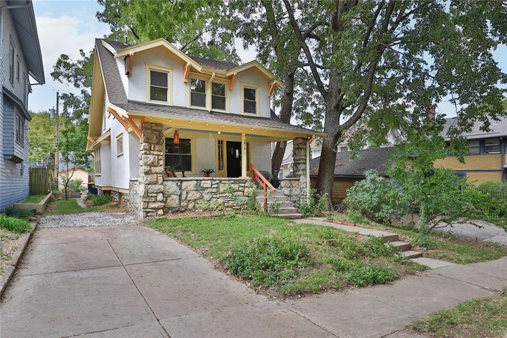 3BR/1.5 BATH RIGHT NEXT TO THE EMERALD JEWEL OF KANSAS CITY, ROANOKE PARK. Tucked at the end of a one way street in Volker sits a sweet craftsman bungalow, waiting for it's next loving owner(s). The large living room has shiny hardwood floors & beautiful original wood moldings as well as a fireplace to make a frigid evening cozy. The dining room has a window seat flanked by a gorgeous pair of original built ins that have stained glass doors. These set off the stained glass of the dining room light fixtures and the very special box beam ceiling. The bright kitchen has lots of cabinets, a small eating area and a great window over the sink to watch the goings on on the deck which overlooks the yard and swing area. There is also a bonus first floor room that presents as a den, office OR MUSIC ROOM with built in bookshelves and dreamy window seat. The convenient first floor half bath comes complete with washer, dryer and the rare laundry chute! Large, 2nd floor master has lots of windows and a decorative fireplace and mantle. Large 2nd floor bath has a great clawfoot soaking tub and pedestal sink. Two more bedrooms adjoin a sunporch that is a flexible space for hobbies, playing, sewing or just enjoying nature. Owners have made several energy improvements with new windows and doors, high efficiency furnace and blown insulation into walls, soffits and attic to a rating of R-40. AVERAGE GAS/ELEC. BILL $116.11/MO!!!.Yard planted with natives and two valuable cachement tanks save rain water for your garden. Great savings. DON'T OVERLOOK being just across the street from the Roanoke Park, with tennis courts, playground equipment, labeled walking trails, sand volleyball court, community center and explorations to be had. Up the street are the fun shops and restaurants of 39th Street, ever interesting and evolving. Close to everything and lots of fun!