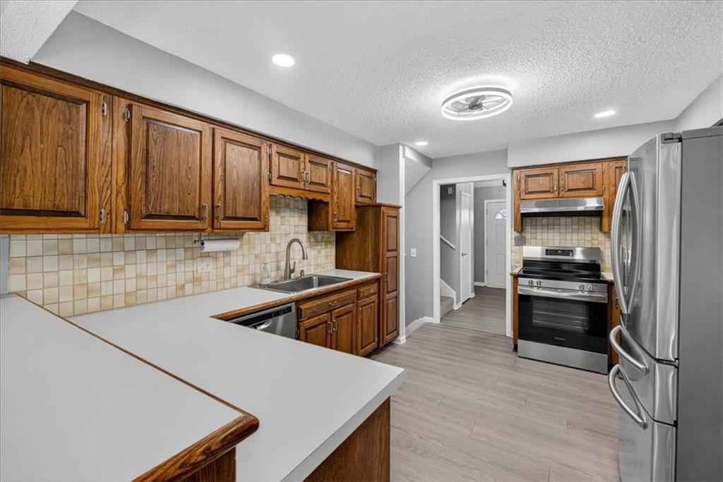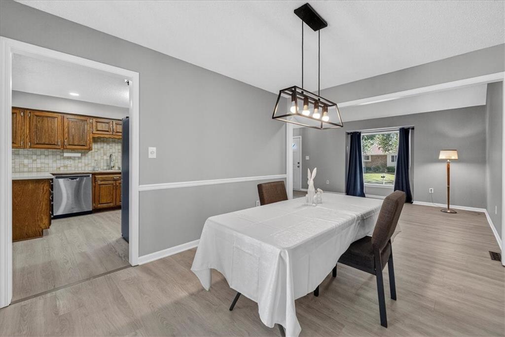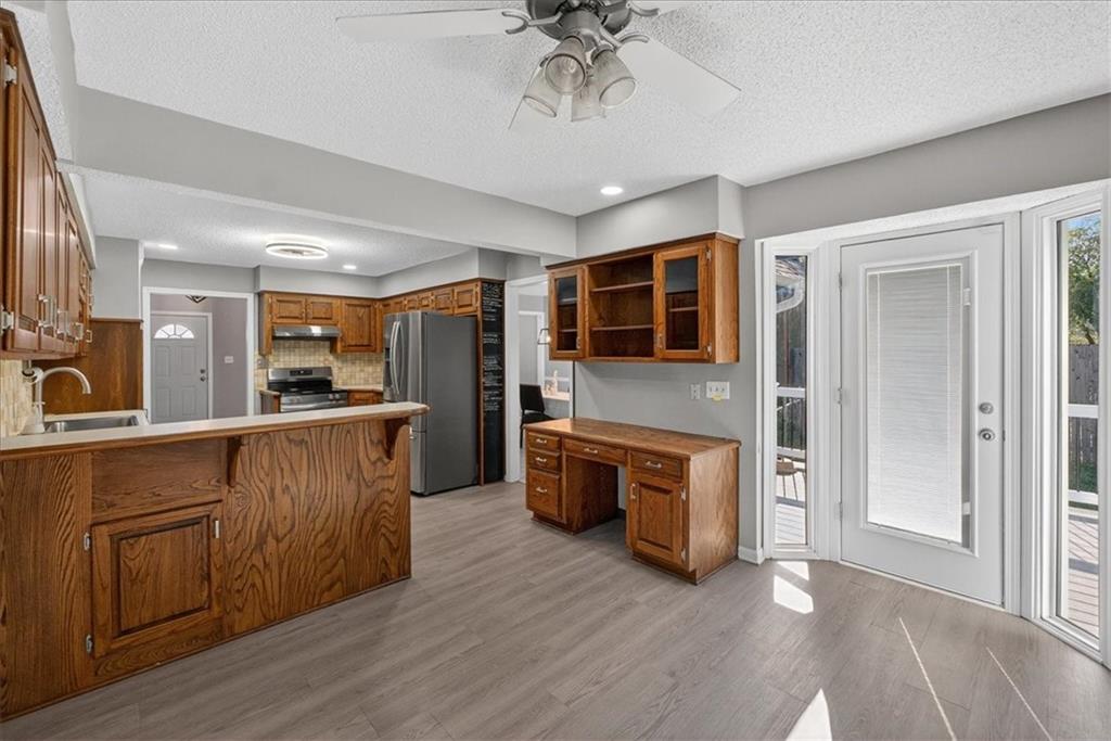 Welcome to this turn key home. HONEY, stop the car. This is the home that never ends!!! The exterior’s cheerful blue accents and stone detail create great curb appeal, while inside you’ll find fresh flooring, modern lighting, and an open layout perfect for everyday living with 5 levels of finished living space! The kitchen offers plenty of cabinet and counter space, stainless steel appliances, and a built-in desk area—ideal for meal prep or homework. A spacious dining room flows into the bright living area with vaulted ceilings, adding to the home’s airy feel. Upstairs, generous bedrooms and an oversized bonus room provide flexible options for a home office, playroom, or guest space. The lower-level family room features a cozy stone fireplace—just right for movie nights or relaxing weekends. Step out back to enjoy the fenced yard, complete with a new composite deck and storage shed. Conveniently located near schools, shopping, and highway access, this home blends comfort, character, and function in one great package.