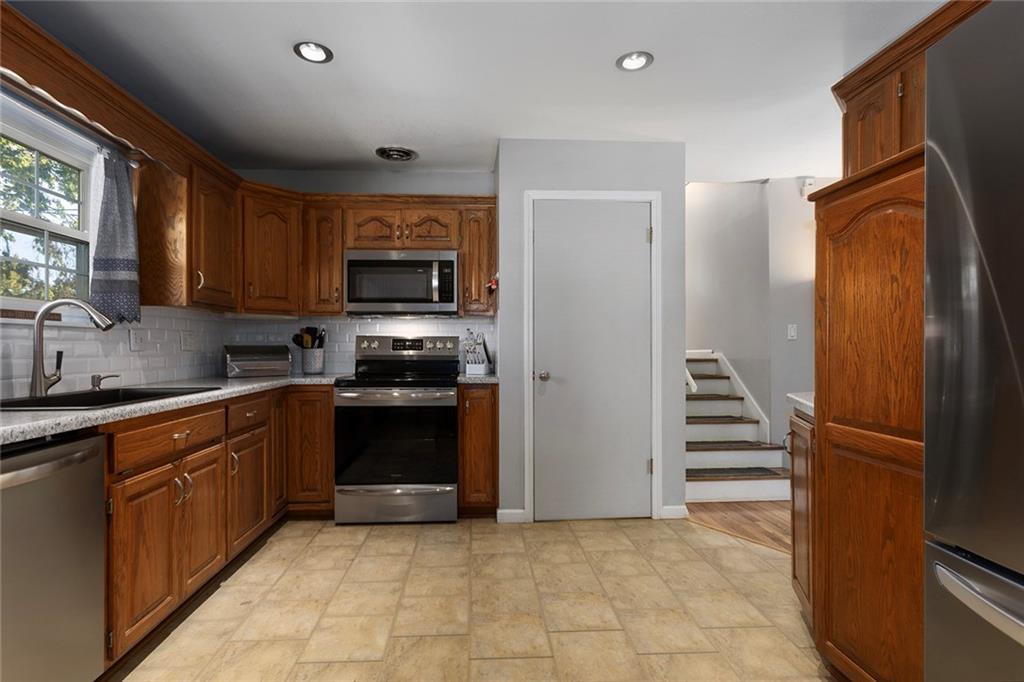 This home is well maintained, with pride of ownership. Clean and inviting, the side-to-side floor plan maximizes the living and entertaining spaces. A large living room with wood floors, flows to the spacious kitchen with plenty of cabinetry and updated backsplash and farmhouse sink PLUS room for dining. Just a few steps to the three bedrooms all with hardwoods, the primary bedroom has a private full bathroom. Most utilities are less than 10 years old! Don't miss this one!