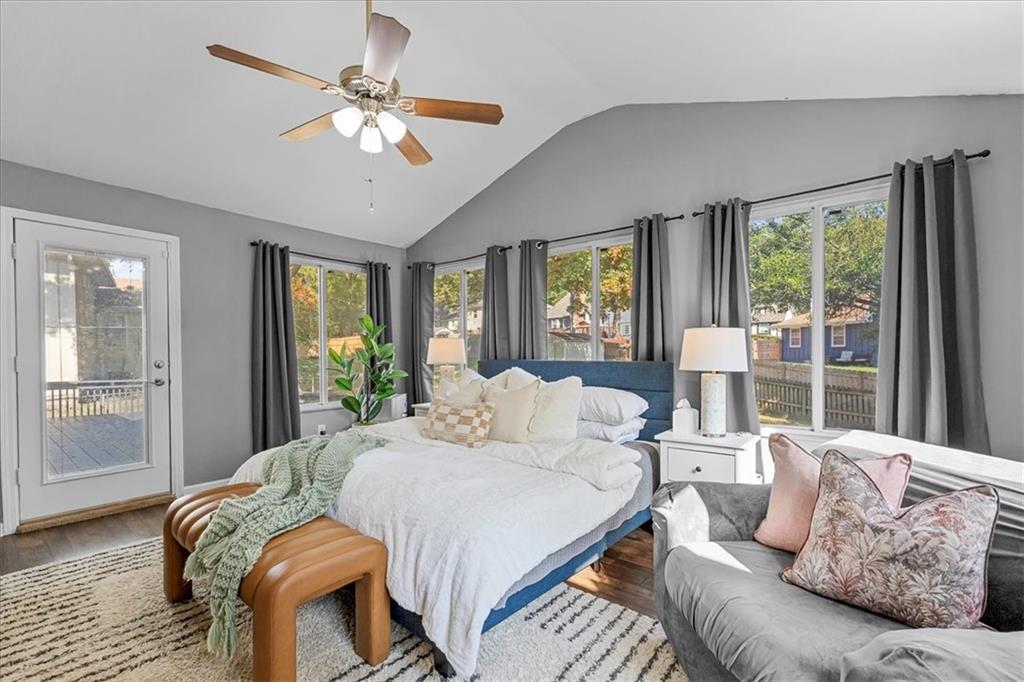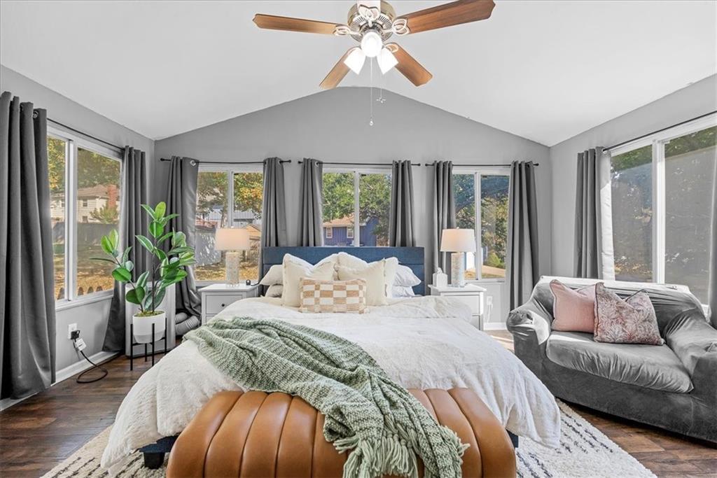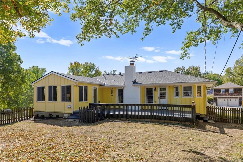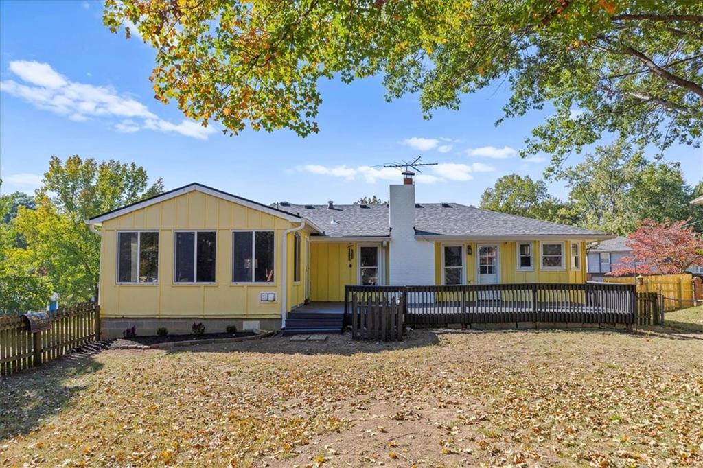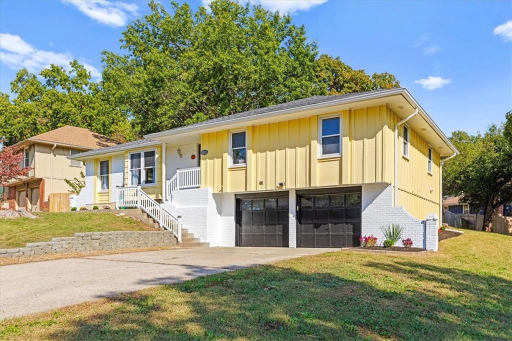 Perched on the corner of a quiet street, this raised ranch greets with fresh landscaping, new roof and low maintenance vinyl windows. Once inside, find a bright and airy formal living/dining area that are perfect for hosting those holiday gatherings. Speaking of gathering, the updated kitchen makes entertaining a breeze with open sight lines into the family room, updated cabinets, solid surface countertops and a gas stove for the home chef. The kitchen also offers a breakfast bar overlooking the large deck and fenced yard. The family room has a cozy hearth and hardwood floors add to the warmth. There are two sizable secondary bedrooms and an updated guest bath on the way back to the primary wing. Once inside the primary bedroom there is a small reading nook and access to a large main-level laundry room (a rare find in this area). A walk-in closet and updated en-suite add to the luxurious feel of the bedroom, and the wall of windows and vaulted ceilings truly make this an oasis. On the lower level there is partial finish with drywall and plenty of space for a rec room with cabinets in place and a half bath for guests. There is also a large storage room and access to the two car garage on this level. Nestled into quiet Red Bridge Meadows, this home offers a suburban feel with the ability to walk to neighborhood parks, grocery store and KC favorites like Barrio. Come experience life in one of south KC's most sought after areas!