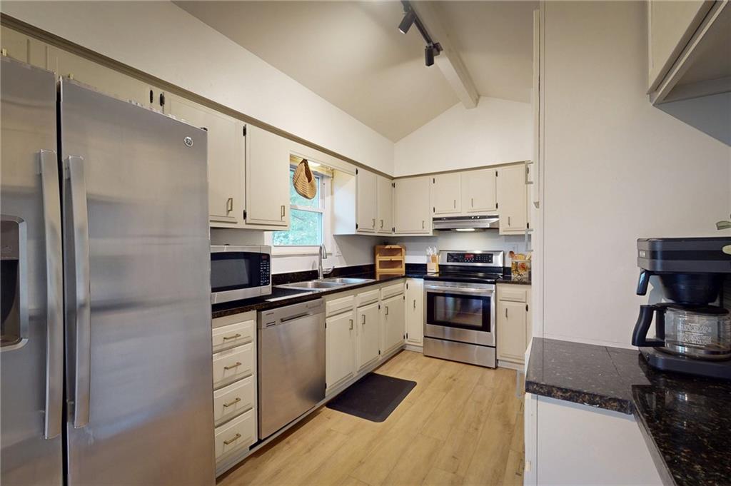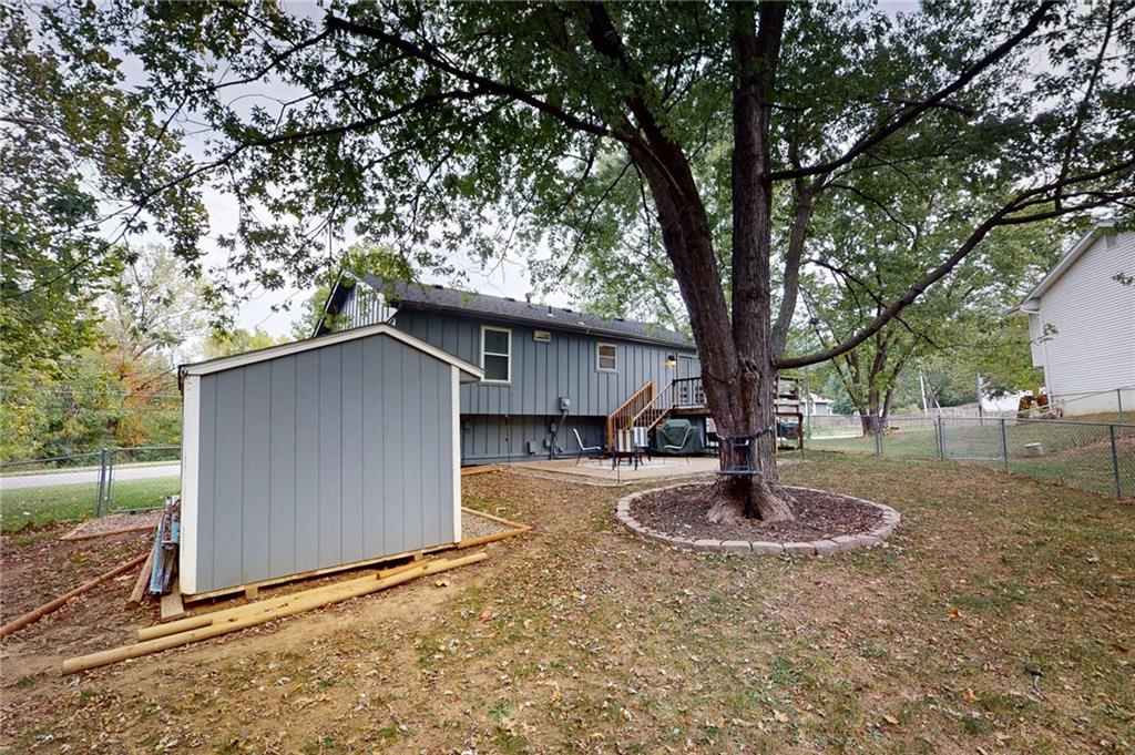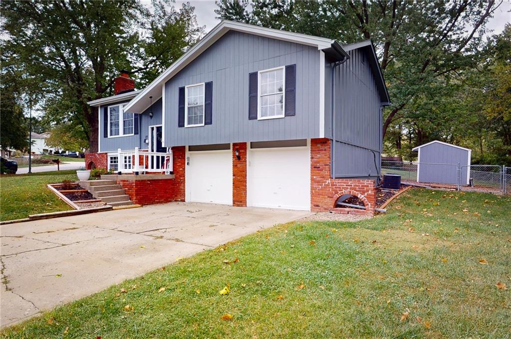 This beautifully updated 3-bedroom, 2-bath Split Entry home sits on a spacious corner lot and is ready for you to move right in! So many big-ticket updates have already been completed — 2024: New Roof, New HVAC, and New Sewer Line. 2025: New main floor LVP flooring, updated bathrooms, and fresh exterior paint — all the major improvements are done! Step upstairs to a bright and spacious living room that flows into the eat-in kitchen featuring granite countertops, a breakfast bar, and plenty of cabinet space. The main level also offers an updated hall bath and three nicely sized bedrooms. The finished lower level provides extra living space with a cozy fireplace and full bath — perfect for a family room, guest suite, or even a non-conforming primary or 4th bedroom. Enjoy the outdoors with a large fenced backyard, storage shed, and a deep two-car garage. This home truly checks all the boxes for comfort, updates, and convenience!