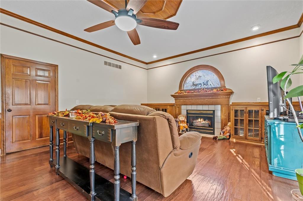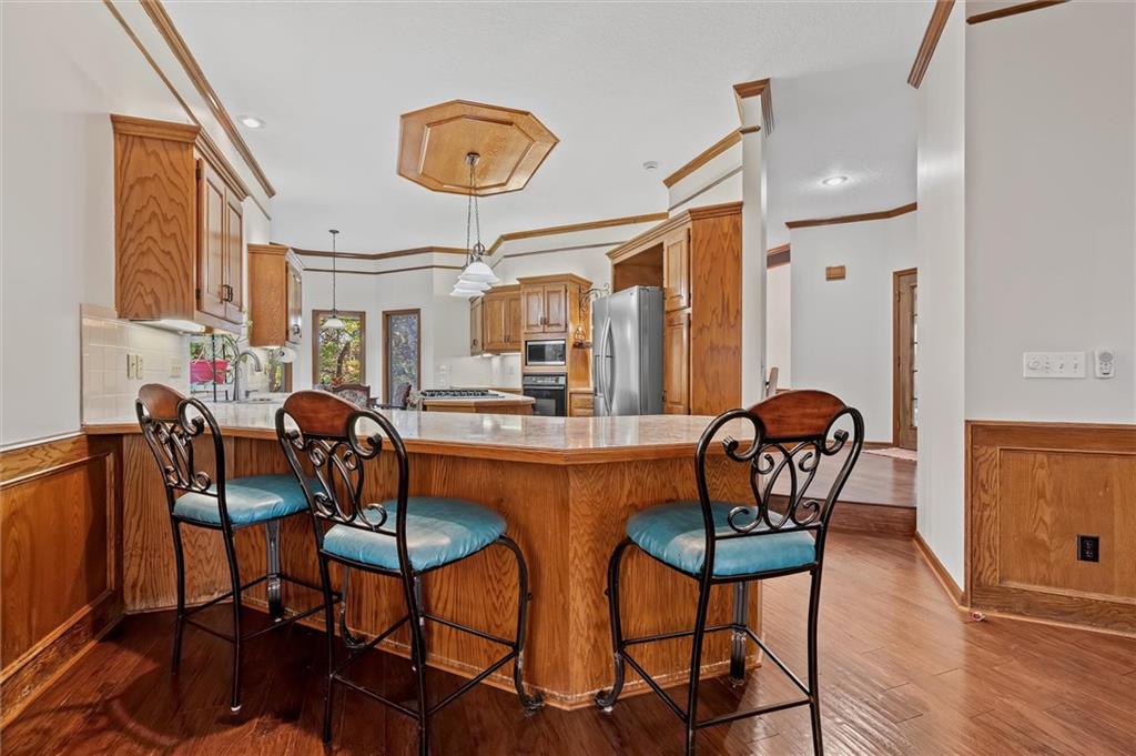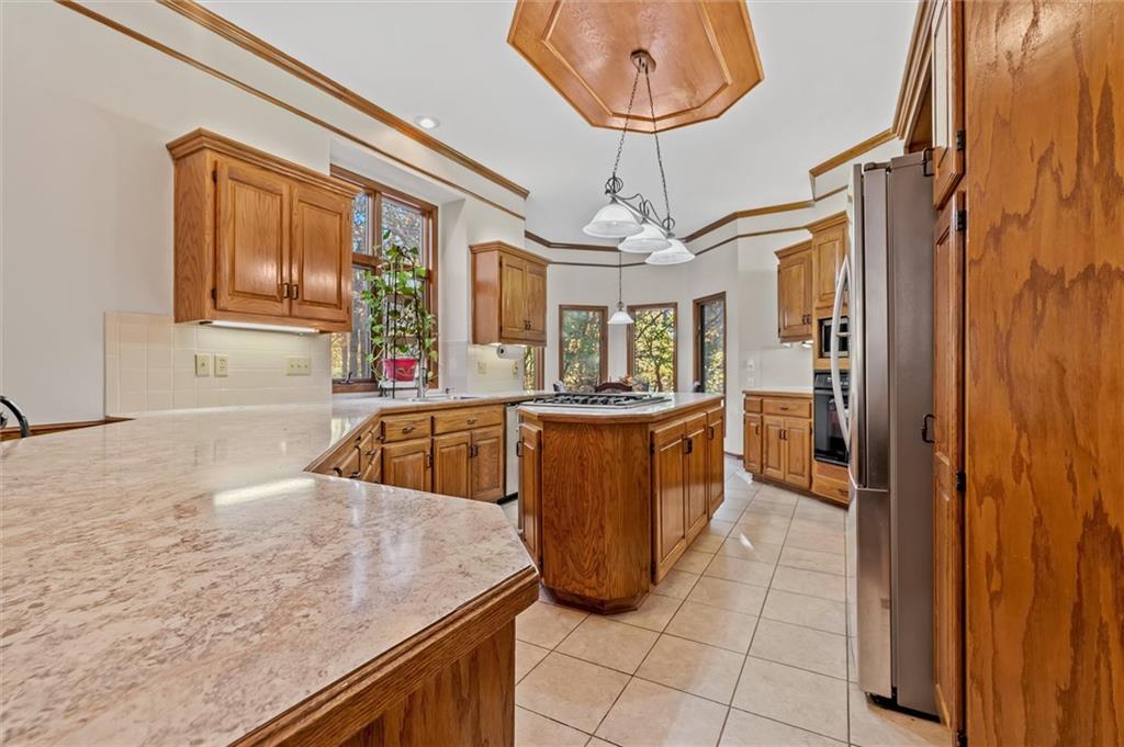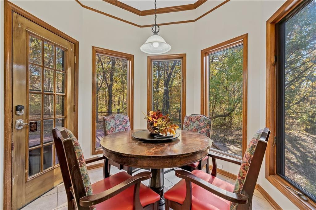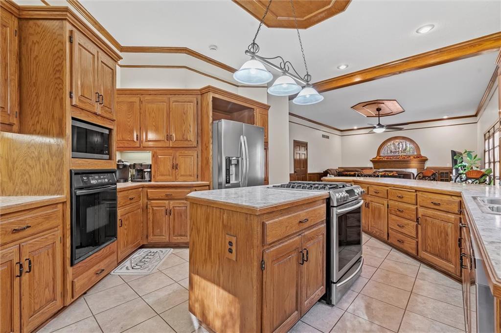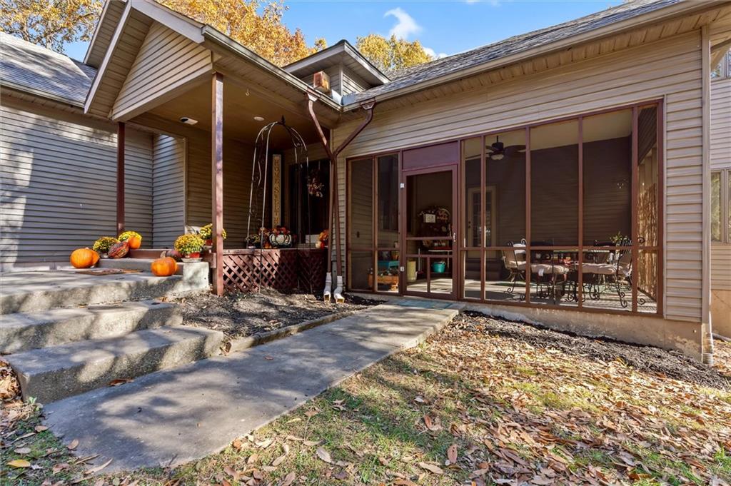 Welcome to this Picture-Perfect home, nestled in a park like setting on 3.35 acres. This 4-bedroom 4bath home is located in the highly sought-after Kearney School District. The extra-large kitchen is a chefs dream with a gas/electric range and two ovens. Above and under cabinet lighting shows off the beautiful cabinetry. Enjoy hosting family and friends in the formal dining room with a pass through from the kitchen. A cozy fireplace calls the living room home. The oversized master suite includes a large walk-in closet, double sinks, shower and a jacuzzi tub. Bring the family to stay in the two additional bedroom suites each with a full bath and walk in closet. This home boasts with an abundance of natural lighting. Entertaining is made easy in one or both of the screened in porches or on the extra-large deck. An oversized double car garage in the front, a full concrete basement with workshop and third garage leads to a second driveway. Storage was a priority when designing this custom-built home with a unique floor plan. New roof, new gutter and new paint. This home won't last long.