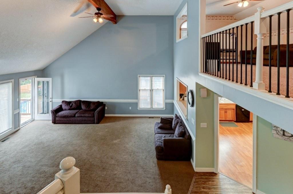 Lots of space for the money in this well-cared-for custom home. Main-level primary bedroom. Open and vaulted great room with space for formal dining near kitchen. Large eat-in kitchen with access to deck. Low-maintenance vinyl siding, covered front porch, and deck off great room. Finished walkout lower level includes an office, bar area, and a huge recreation room. Upstairs features a loft living area and two spacious bedrooms, each with large walk-in closets. Unfinished room in basement offers great storage or workshop potential. Convenient location near schools, shopping, I-70, and medical facilities.