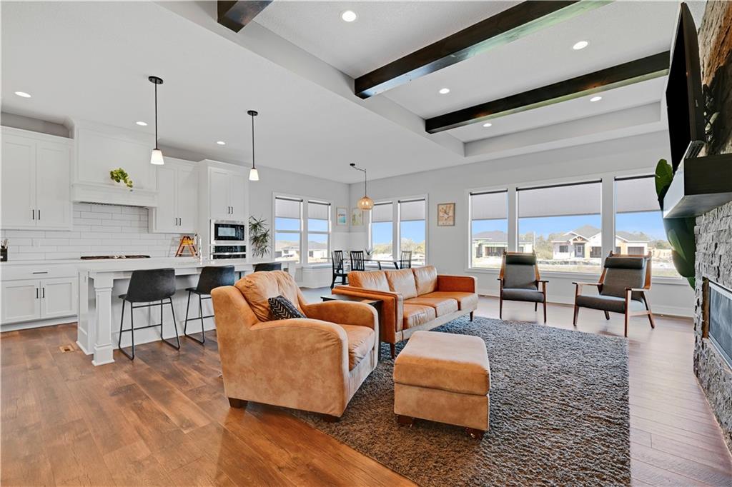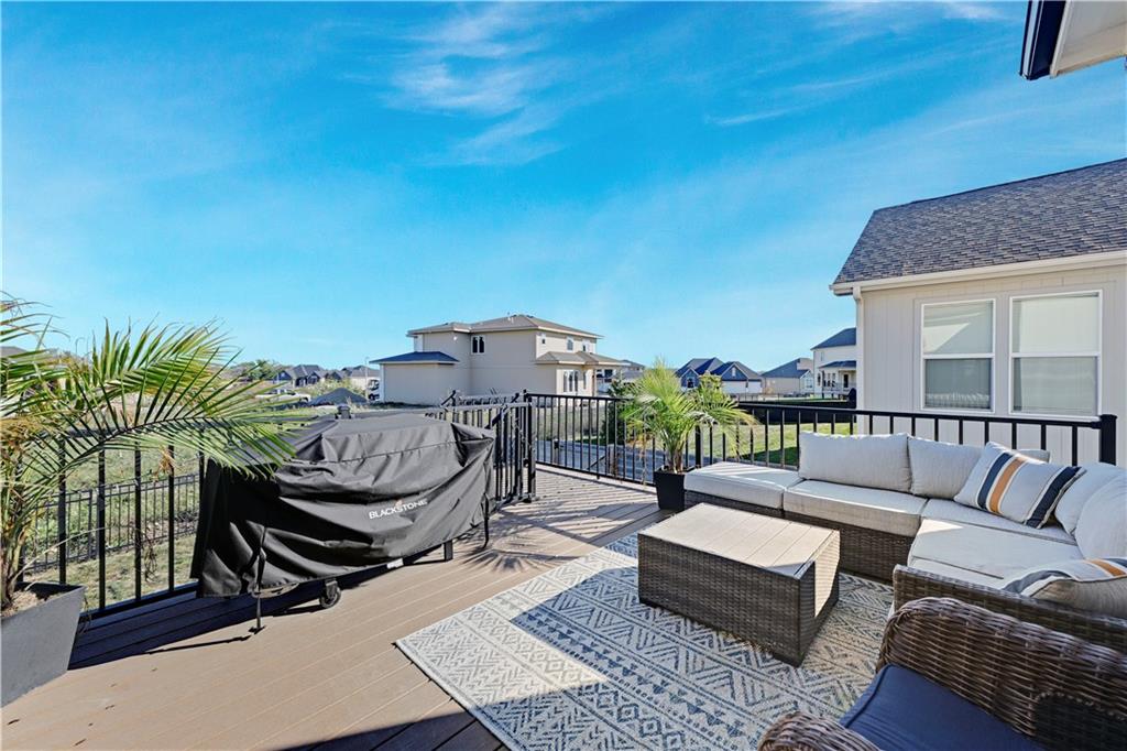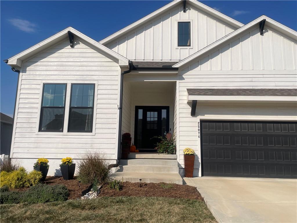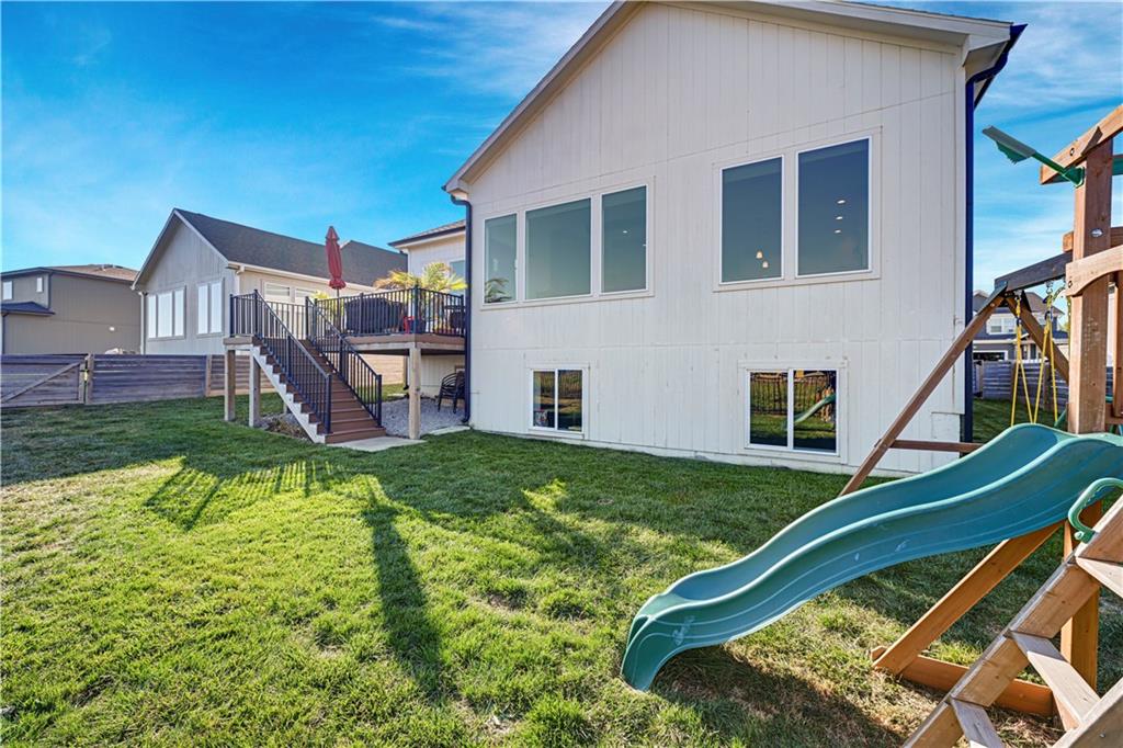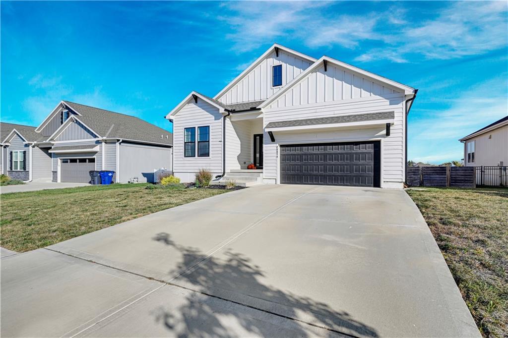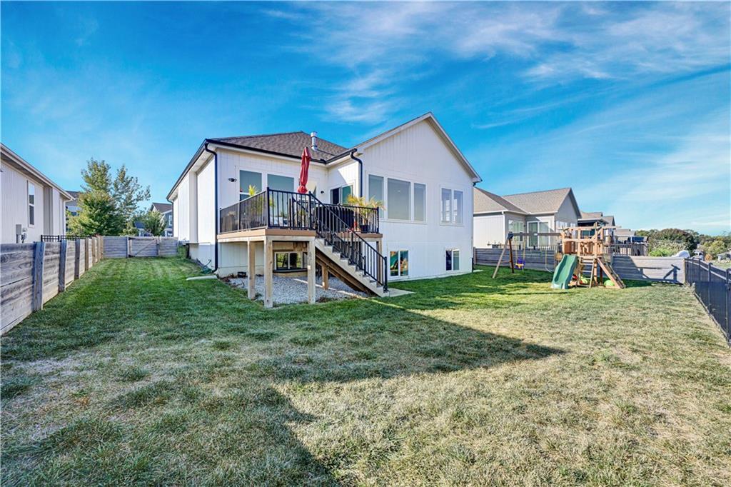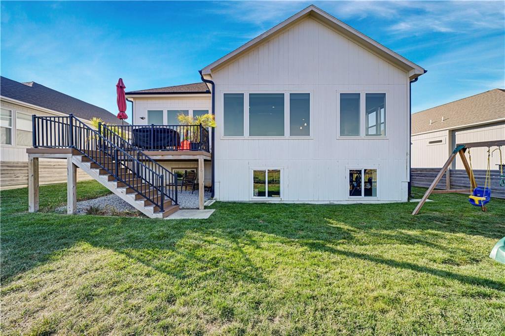 You can be in your new home by the holidays!!!Experience comfort, style and modern living just moments from Lake Olathe. This stunning reverse 1.5 story home features 4 bedrooms and 3 full bathrooms, offering the perfect balance of elegance and warmth. The open concept main level showcases soaring ceilings, a cozy fireplace, and expansive windows that bathe the home in natural light. The gourmet kitchen boasts quartz countertops, stainless steel appliances, a gas cooktop, and a large island-ideal for entertaining and family gatherings. The finished lower level was completed in 2024 and is designed for fun and relaxation, featuring a spacious recreation area, wet bar, full bath and guest bedroom. Perfect area for movie nights or game days. With over 80k in upgrades, this home combines quality and style throughout. The backyard is fenced and a relaxing evening can be spent on your deck. Enjoy nearby Lake Olathe which is a 170 acre lake great for kayaking, paddle boarding and fishing as well as a swimming beach. Lake Olathe also offers scenic walking and biking trails and this home has direct easy access to those trails for your daily walks.