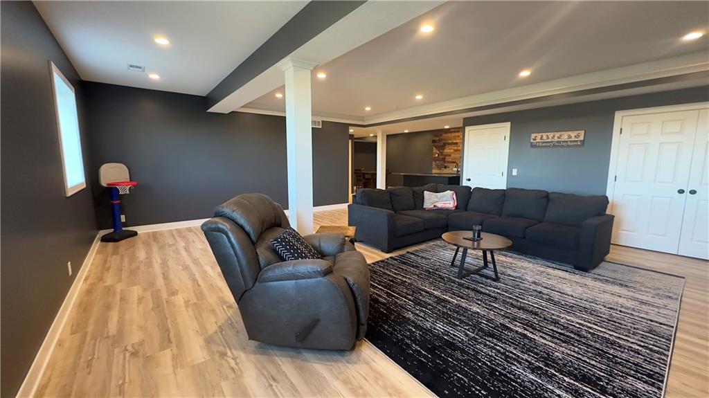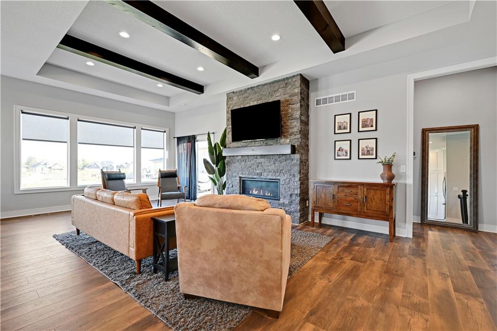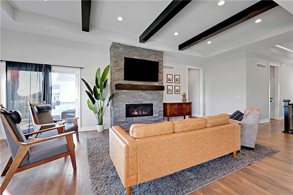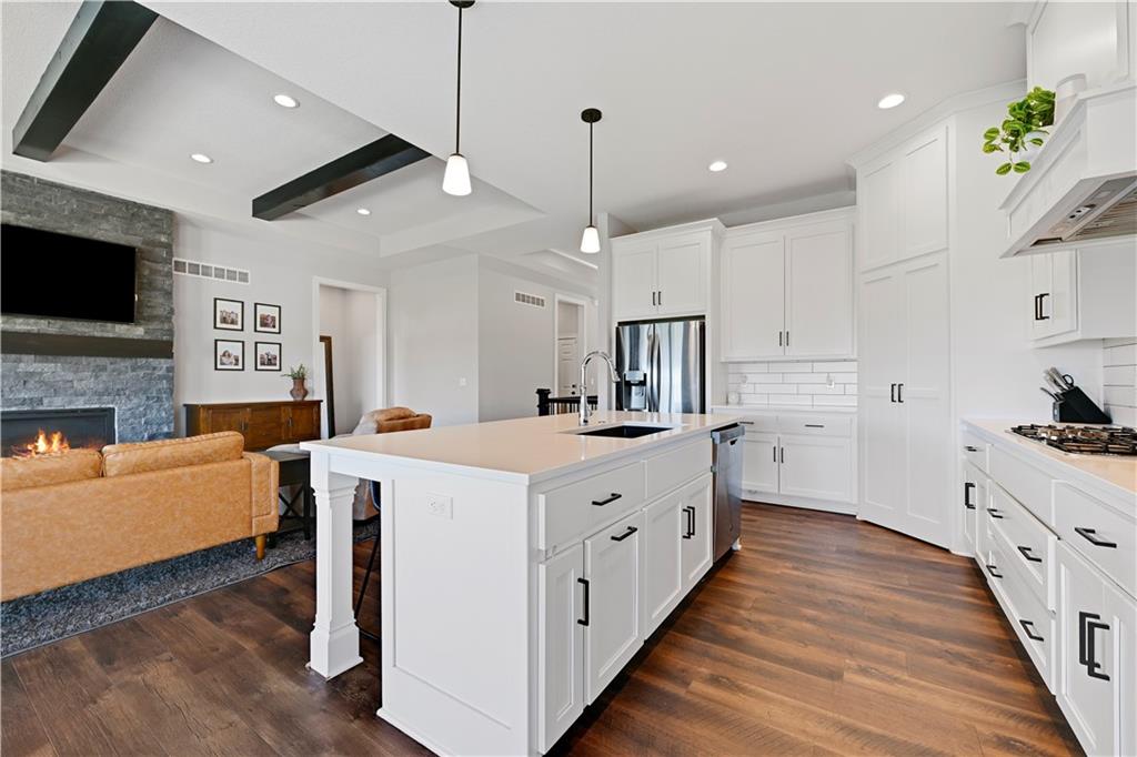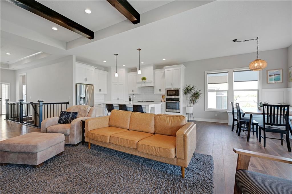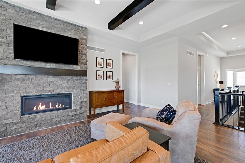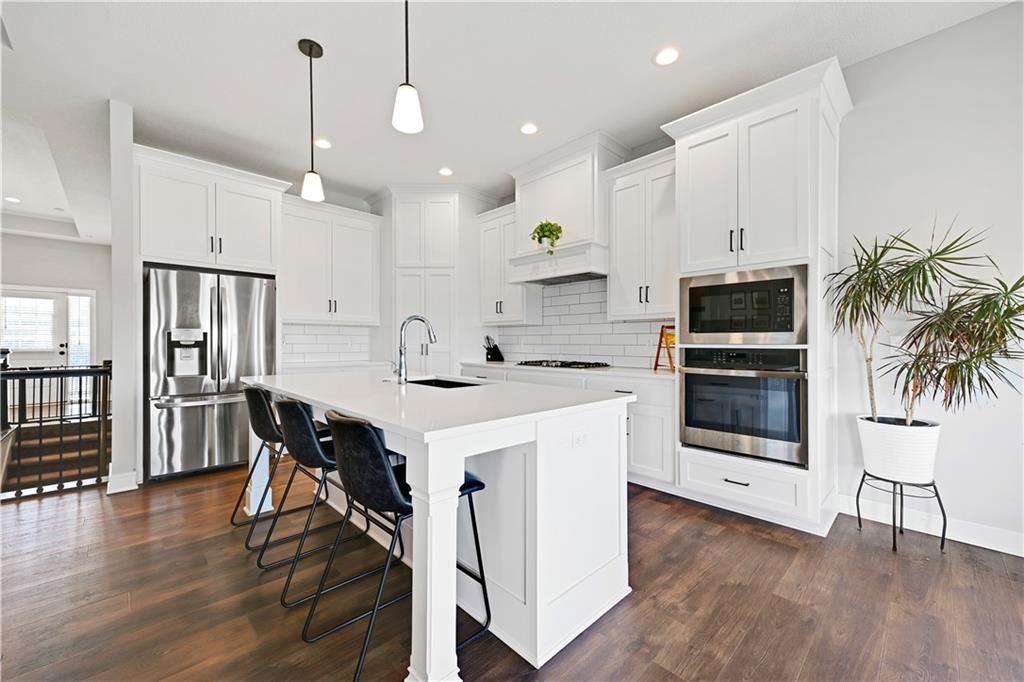 You can be in your new home by the holidays!!!Experience comfort, style and modern living just moments from Lake Olathe. This stunning reverse 1.5 story home features 4 bedrooms and 3 full bathrooms, offering the perfect balance of elegance and warmth. The open concept main level showcases soaring ceilings, a cozy fireplace, and expansive windows that bathe the home in natural light. The gourmet kitchen boasts quartz countertops, stainless steel appliances, a gas cooktop, and a large island-ideal for entertaining and family gatherings. The finished lower level was completed in 2024 and is designed for fun and relaxation, featuring a spacious recreation area, wet bar, full bath and guest bedroom. Perfect area for movie nights or game days. With over 80k in upgrades, this home combines quality and style throughout. The backyard is fenced and a relaxing evening can be spent on your deck. Enjoy nearby Lake Olathe which is a 170 acre lake great for kayaking, paddle boarding and fishing as well as a swimming beach. Lake Olathe also offers scenic walking and biking trails and this home has direct easy access to those trails for your daily walks.