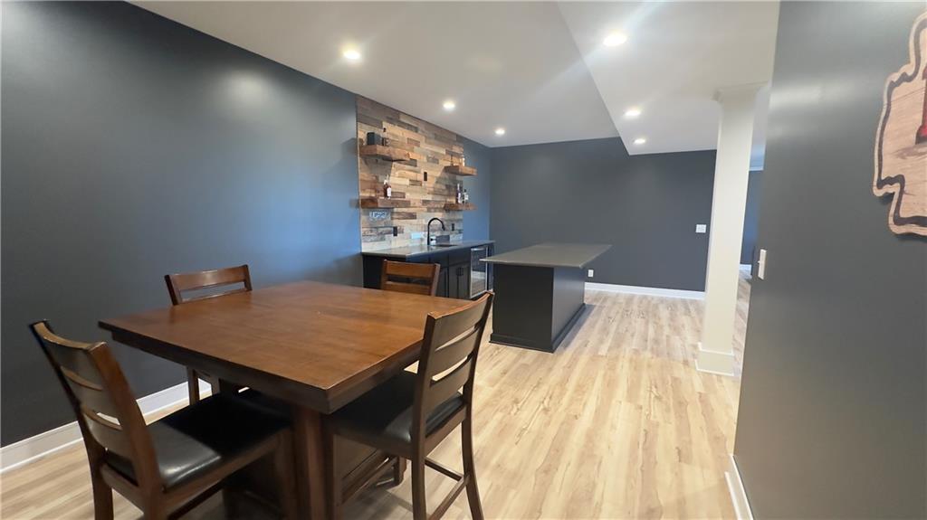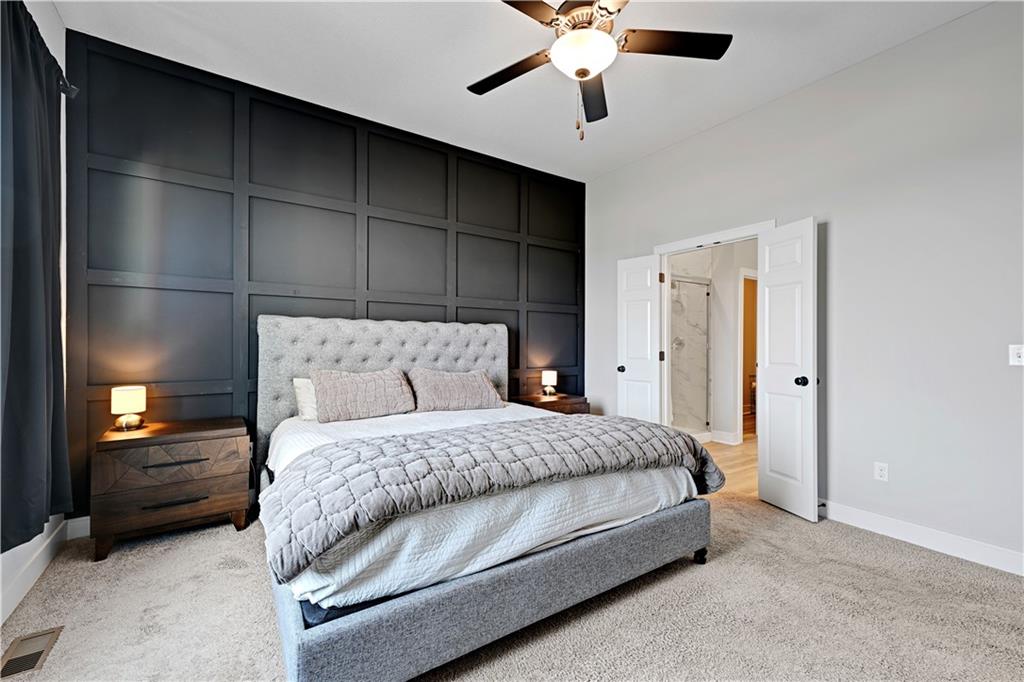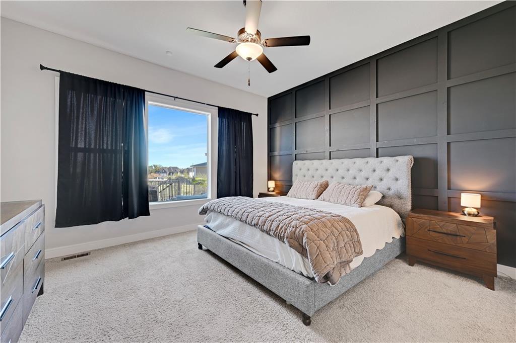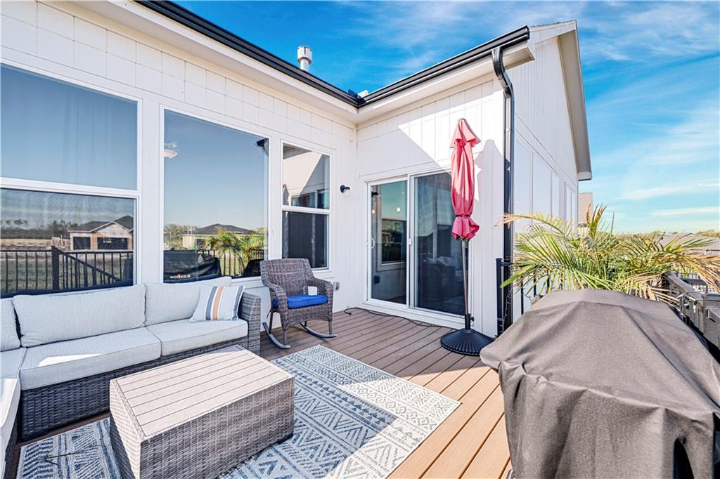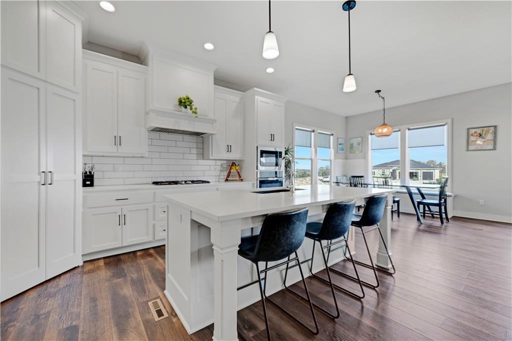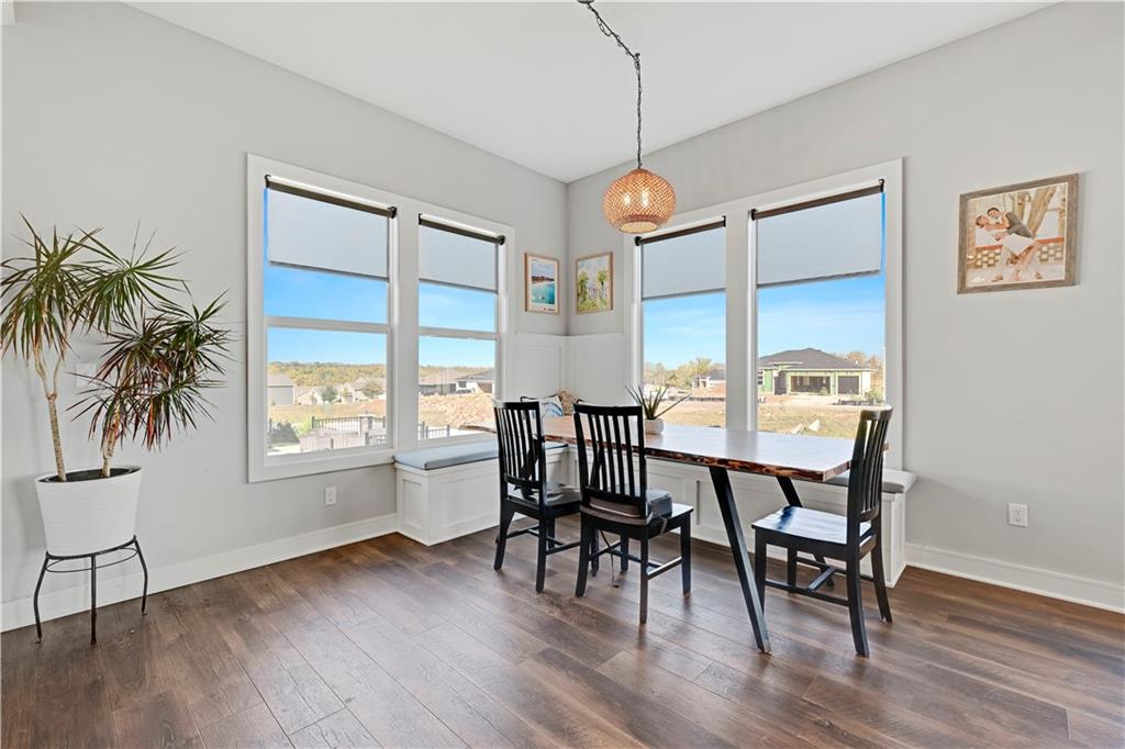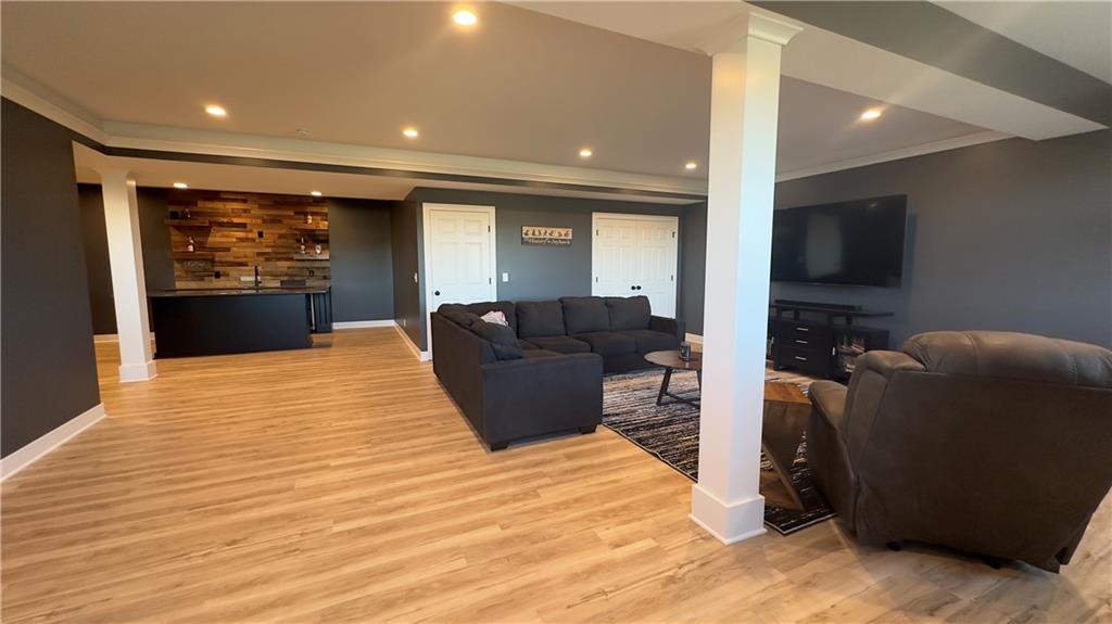 You can be in your new home by the holidays!!!Experience comfort, style and modern living just moments from Lake Olathe. This stunning reverse 1.5 story home features 4 bedrooms and 3 full bathrooms, offering the perfect balance of elegance and warmth. The open concept main level showcases soaring ceilings, a cozy fireplace, and expansive windows that bathe the home in natural light. The gourmet kitchen boasts quartz countertops, stainless steel appliances, a gas cooktop, and a large island-ideal for entertaining and family gatherings. The finished lower level was completed in 2024 and is designed for fun and relaxation, featuring a spacious recreation area, wet bar, full bath and guest bedroom. Perfect area for movie nights or game days. With over 80k in upgrades, this home combines quality and style throughout. The backyard is fenced and a relaxing evening can be spent on your deck. Enjoy nearby Lake Olathe which is a 170 acre lake great for kayaking, paddle boarding and fishing as well as a swimming beach. Lake Olathe also offers scenic walking and biking trails and this home has direct easy access to those trails for your daily walks.