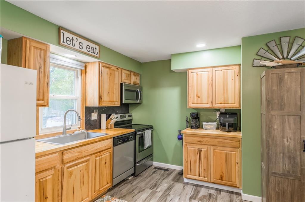 Charming 3-Bedroom Home with Modern Updates and Spacious Yard Welcome to this inviting 3-bedroom, 1.5-bath home that perfectly blends warmth, comfort, and modern updates. Step inside to a bright and cozy living room featuring a wood-burning fireplace with a brick surround—the perfect spot to unwind after a long day. The updated kitchen offers plenty of charm with natural wood cabinetry, updated appliances, and a cheerful, open layout with eat-in dining. The adjacent laundry area adds convenience and functionality to your daily routine. Enjoy the beautifully refreshed bathroom and comfortable bedrooms that make this home move-in ready. Outside, the property offers a detached garage/shop and a spacious backyard, ideal for outdoor gatherings, gardening, or simply relaxing. With thoughtful updates throughout and a welcoming atmosphere, this home is ready for you to make it your own.