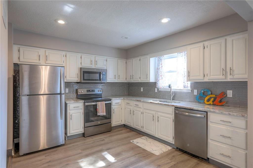 Welcome to this spacious 3 bed, 2.5 bath half-duplex in the heart of Overland Park! With 1,752 sq ft of living space, this home features an open main level with a cozy fireplace, large living/dining combo, and a functional kitchen with plenty of cabinet space, granite countertops, a pantry, and SS appliances. Upstairs, find three generously sized bedrooms including a primary suite with en-suite bath and walk-in closet. Updated bathrooms, neutral paint, and new fixtures make this turnkey! The unfinished basement offers excellent storage or potential for future expansion. Enjoy the convenience of an attached one-car garage and low-maintenance yard. Located in the highly rated Shawnee Mission School District, close to parks, shopping, and easy highway access. No HOA! Great opportunity for owner-occupants or investors.