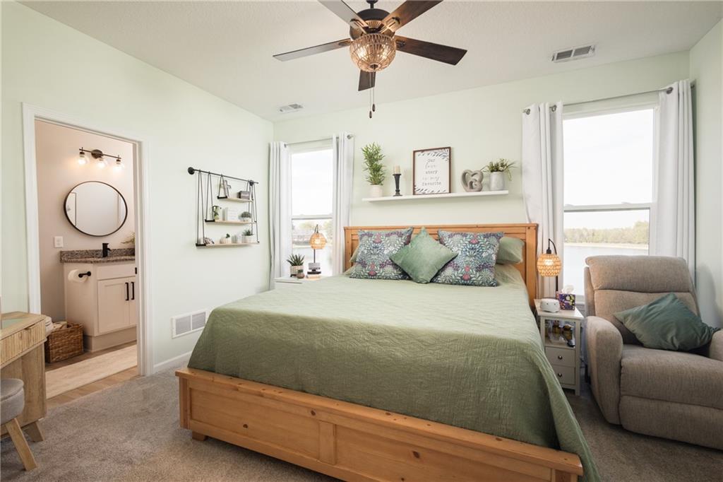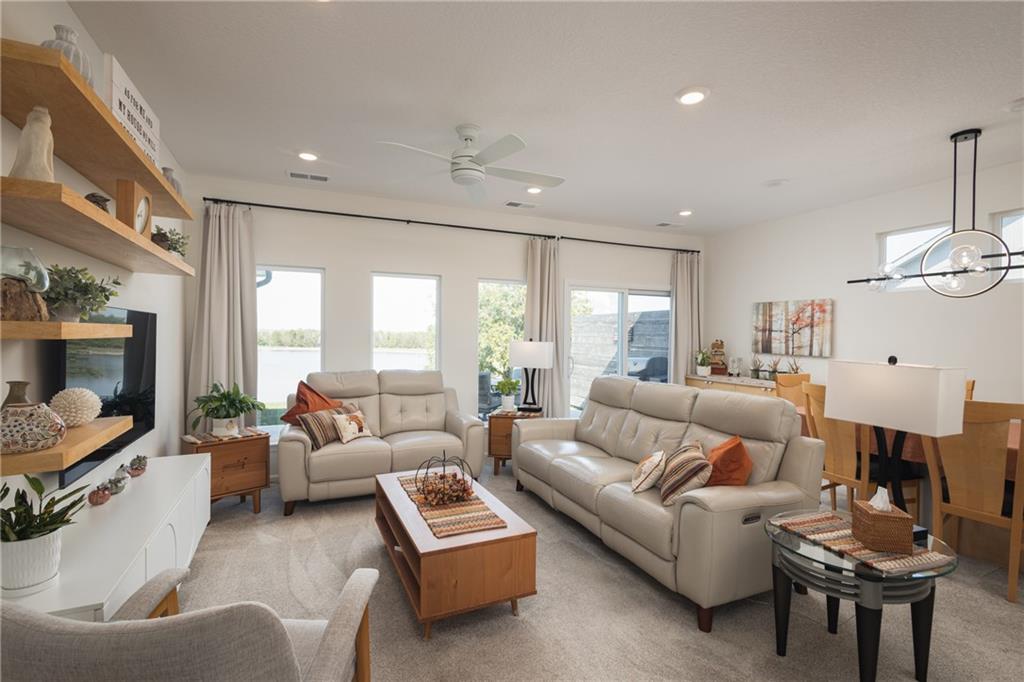 One of the most desirable lots in the neighborhood! This stunning 3-bedroom, 2-bath home offers breathtaking views and an ideal blend of comfort, quality, and style. Built just 4 years ago, it’s in impeccable condition and filled with thoughtful upgrades throughout. The heart of the home features a huge kitchen island, tall cabinetry, pull-out shelves, soft-close drawers, and a pantry—a dream setup for any home chef. The expanded dining area provides plenty of space for gatherings, while oversized living room windows perfectly frame the view of the stocked pond. You’ll love the custom built-in entertainment center and the primary bedroom enlarged by 30 sqft for added comfort. The garage includes additional insulation to help with energy efficiency year-round. Step outside to a relaxing patio overlooking the peaceful pond, the perfect spot for morning coffee or evening sunsets. Located in a vibrant community offering fishing, a sparkling pool, a fitness center, and walking trails, this home truly has it all — style, serenity, and convenience!