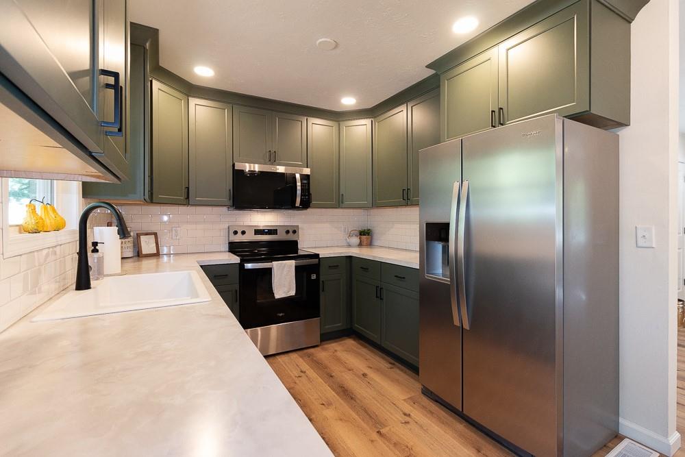 Gorgeously remodeled and spacious home. The newly designed kitchen offers new custom cabinets, new tile backsplash, and all-new appliances. Bathrooms carry the same high-end cabinetry for each vanity. Dual living room space, one on the main floor and a second in the basement; with the basement offering good space for hosting, storing, or hobbies. Additionally, the home offers all new flooring throughout, all new paint for the interior and exterior, as well as all new doors, hardware and fixtures. The bedrooms include a primary bedroom and a second bedroom on the main floor with a larger bedroom in the basement. The exterior offers new windows, new roof, new front deck, and new boards and reinforcements on the backyard deck. The spacious front and backyard areas allow multiple options for hosting and activities.