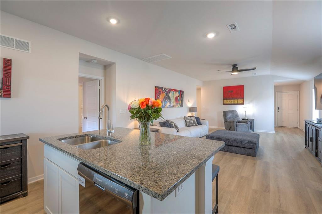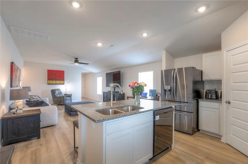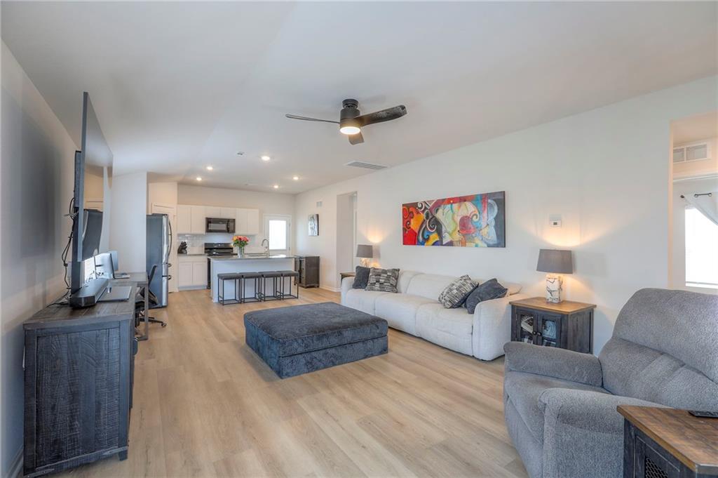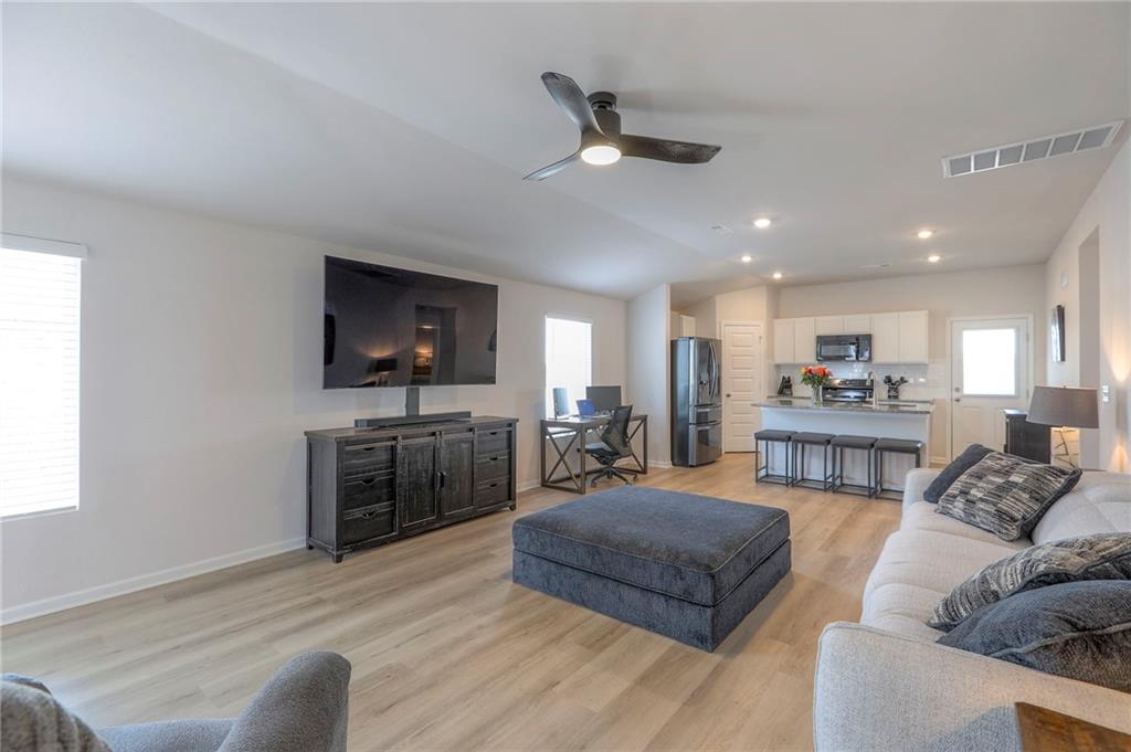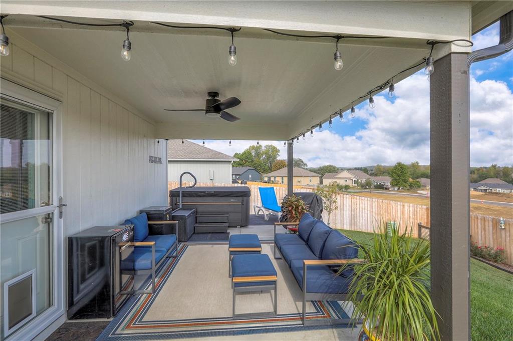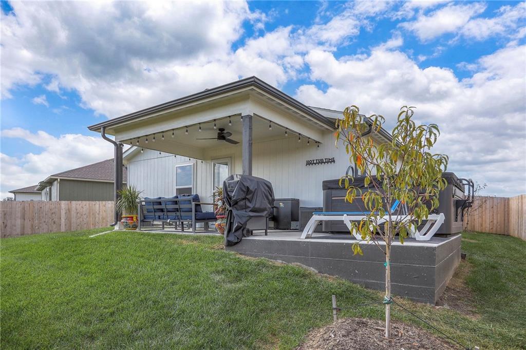 Deal of the year! The ultimate outdoor backyard oasis! **Located just 12 minutes from the Legends.**. Numerous improvements added after home was purchased and numerous upgrades added when built! **Covered back porch**. Incredible landscaping including all new front landscaping, rock path from driveway to side gate, and three raised beds, trees, and rose garden in the backyard. Six ft cedar fence with double-boarded interior finish on fence. **Five new ceiling fans operated with remote control.** Decorator blinds on all windows and upgraded storm doors (with glass and screen options) on both doors. Enjoy the ultimate outdoor backyard oasis under your covered patio surrounded by beautiful landscaping. **And don't forget, the builder warranty is in place until May 2026.**