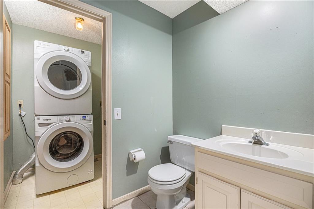 Well-maintained duplex located on a quiet cul-de-sac, built by Tom French and owned by the original owners. This rare property offers quality craftsmanship and a peaceful setting. The main level features an open-concept living and dining area with 20-foot ceilings, a gas fireplace, and a beautiful over-sized antique mirror. The updated kitchen includes granite countertops, tile backsplash, freshly painted soft -close cabinets, and stainless steel appliances—all of which stay. The primary bedroom, which features a walk-in closet, and the laundry room are conveniently located on the main floor. Upstairs offers two spacious bedrooms, each with large closets, and a full bathroom with separate vanities for each room. The finished basement provides additional living space, including a bonus room/possible 4th bedroom or office area, a full bathroom, cedar closet, and ample storage which wraps completely around. The basement also features tiled flooring in the main area. A brand-new stackable washer and dryer are included. Additional updates include a brand-new driveway and garage floor, two water heater tanks, furnace and A/C replaced within the last seven years (serviced regularly by Neal Harris), roof replaced within the last six years, a sprinkler system, and gutter guards installed two years ago. Wood flooring throughout the main level and carpeted bedrooms add warmth and comfort. HOA covers lawn maintenance and snow removal. Located in a quiet cul-de-sac with minimal traffic, this property offers pride of ownership, modern updates, and move-in-ready convenience.