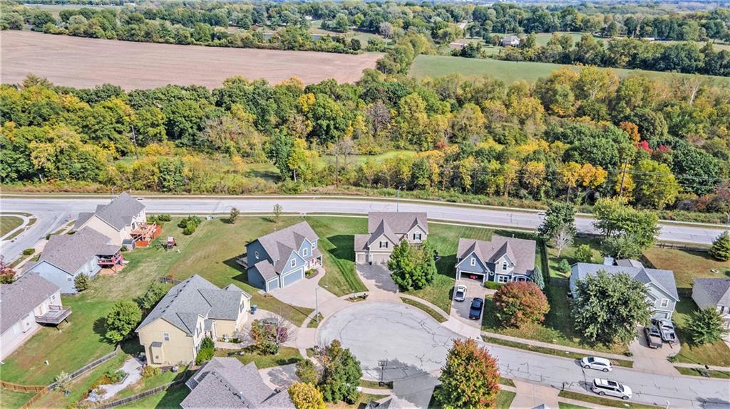 From I-35, take the 152 Highway exit and head east. Turn north onto Kansas Street. Continue straight and turn right onto Homestead Drive. Turn right onto Sumac Circle. Home is on the right.