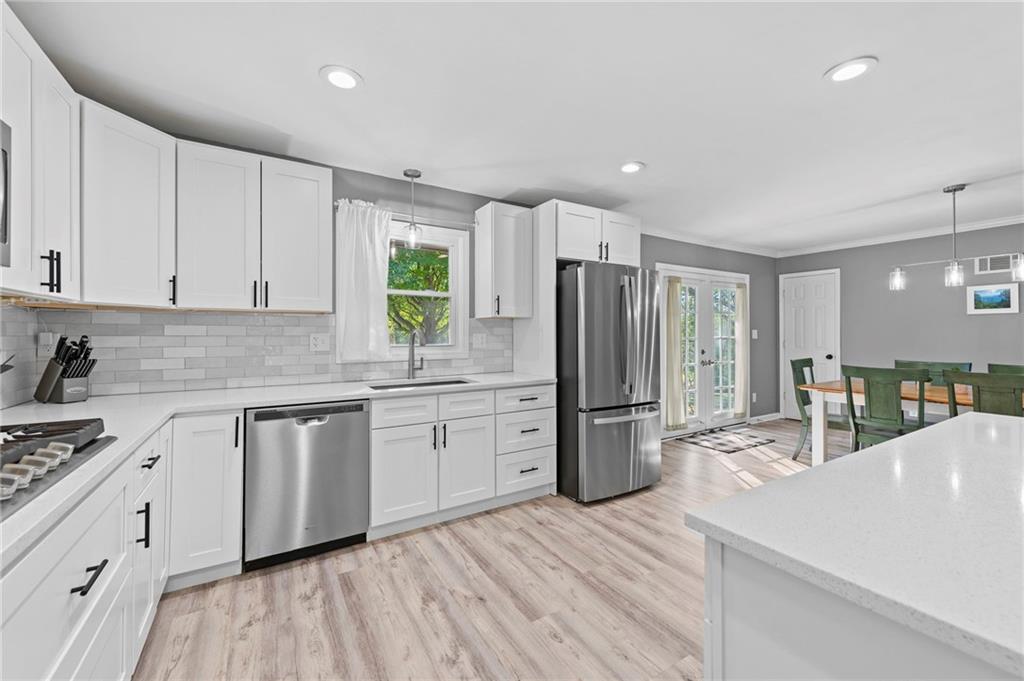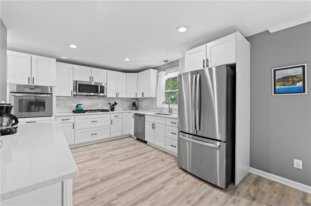 This is it! Move right in with updates already in place. Paint in today's color schemes. Check out the recently renovated and upgraded kitchen and baths. Kitchen is gorgeous with lots of cabinet space, and built in stainless steel microwave and electric oven with a gas cooktop. Living room, kitchen, bedrooms and baths are all on main level. Downstairs you will enjoy the extra finished space with second living area and office/hobby room. Great extended patio area overlooks the treed back yard with nice storage shed and yard is fully fenced. Home is nestled on a dead end street so no through traffic and located in the highly rated Park Hill School district. This is a perfect place to call home.
