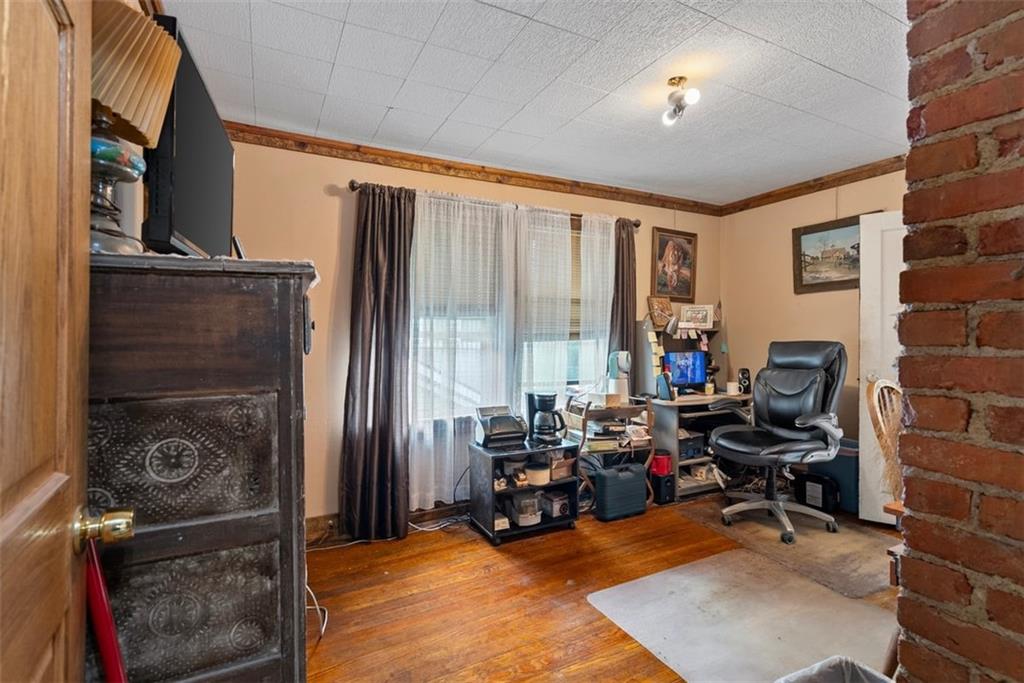 Welcome to this charming 110-year-old home, a timeless treasure that blends historic character with cozy modern comforts. Nestled in a welcoming neighborhood, this delightful property at 446 N. 16th St. in Kansas City, KS offers 3 bedrooms and 1 bathroom, making it an ideal haven for families, first-time buyers, or anyone seeking a warm and inviting space to call their own. With its rich history and thoughtful details, this home invites you to step into a piece of the past while enjoying the practicalities of today. Step inside, and you’ll be greeted by a warm, open living area that seamlessly flows into a spacious dining room. The interior boasts rich wooden beams and trim that highlight the home’s historic roots. Large windows flood the space with natural light, offering views of the lush backyard and creating a bright, airy atmosphere. The kitchen is the heart of this home, blending vintage appeal with functional design. Wooden cabinetry, crafted with care, provides ample storage, while a central island houses a modern stove and oven, ideal for preparing home-cooked meals. A sliding glass door opens to the backyard, seamlessly connecting indoor and outdoor living. The adjacent laundry area, tucked neatly into the kitchen layout, adds convenience with its practical setup. The home also includes a water filtration system, continental polymer siding with a 50 year transferable warranty, and leaf filter gutter covers with a lifetime transferable warranty against clogging. The backyard space is framed by mature trees, offering shade and a natural backdrop, with a small patio area perfect for outdoor entertaining. The presence of gardening tools suggests potential for further landscaping, allowing you to put your personal stamp on this lovely outdoor retreat. This home is filled with character, ready to welcome new memories. Don’t miss the opportunity to own this piece of history with all the comforts of modern living!