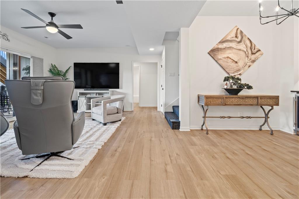 Stunning, Smart & Stylish Home in The Trails of Park Ridge! Welcome to this exceptional home in the highly sought-after Trails of Park Ridge. Completed in January 2022, this residence is truly better than new construction, offering premium upgrades, smart home features, and thoughtful design throughout. From the moment you step inside, you’ll notice the quality and care in every detail. The main level boasts soaring 14-foot ceilings and is filled with natural light from oversized picture windows and a large sliding glass door. The open-concept Great Room features modern floating shelves and flows seamlessly into the dining area and kitchen—perfect for entertaining or everyday living. The home has been extensively upgraded with voice-controlled “Alexa” smart lighting, automated lighting in the walk-in pantry, laundry room, and primary bathroom water closet. The heated garage includes adjustable temperature controls. In the kitchen and primary bedroom, smart remote-controlled blinds—part of a $9,000+ investment—add luxury and convenience, complemented by designer window treatments throughout the home. The lower-level patio was recently upgraded, providing expanded outdoor living space ideal for gatherings or quiet evenings. A new staircase connects the deck to the backyard, offering easy access to the newly landscaped yard. The exterior also features a new programmable holiday lighting system, perfect for year-round enjoyment. Additional highlights include 220-amp wiring on the lower patio (hot tub-ready) and a built-in camera security system. Whether you’re sipping coffee on the private deck or relaxing on the updated patio, this home blends comfort, style, and smart functionality. Don’t miss your chance to own this one-of-a-kind, move-in-ready home in one of the area’s most desirable neighborhoods. Schedule your private showing today!