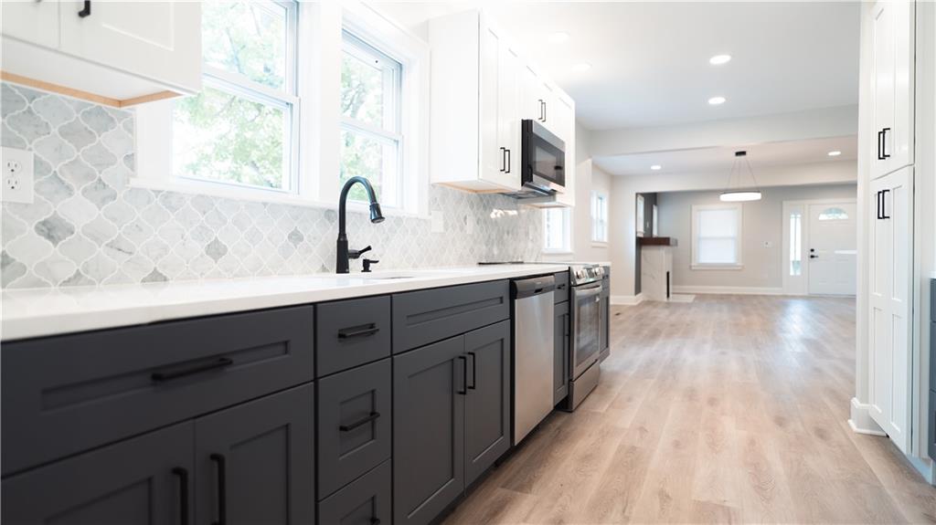 Beautifully remodeled home with plenty of space for hosting and living! The open-flow main level is perfect with bedrooms near by and the main Bedroom right upstairs. The beautiful countertops, brand-new appliances, updated lighting and fixtures, plumbing, electrical and so much more makes this home nothing short of just that! There's plenty of street parking but you also have a 2 car garage, perfect for those cold mornings. The basement is clean, clear and ready for your special touch!