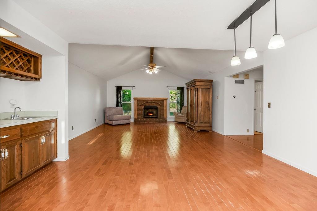 Don’t miss this one-of-a-kind RANCH! Experience main-level living at its best with 2 bedrooms, 2 full bathrooms, a spacious kitchen and dining area, wet bar, laundry, and a 2-car garage—all conveniently on the main floor! The vaulted ceilings and private open-air balcony make the living room feel bright and inviting. The main level features newer carpet and an updated kitchen with modern tile, countertops, and cabinets. Downstairs, the partially finished basement offers tons of potential with extra storage, a second laundry hookup, a second kitchen, and direct access to a cozy sunroom that opens to a peaceful stamped patio and fenced backyard with a shed. No HOA. Additional highlights include a central vac system, newer AC and furnace, and newer garage doors. Conveniently located near dining, shopping, and easy highway access!