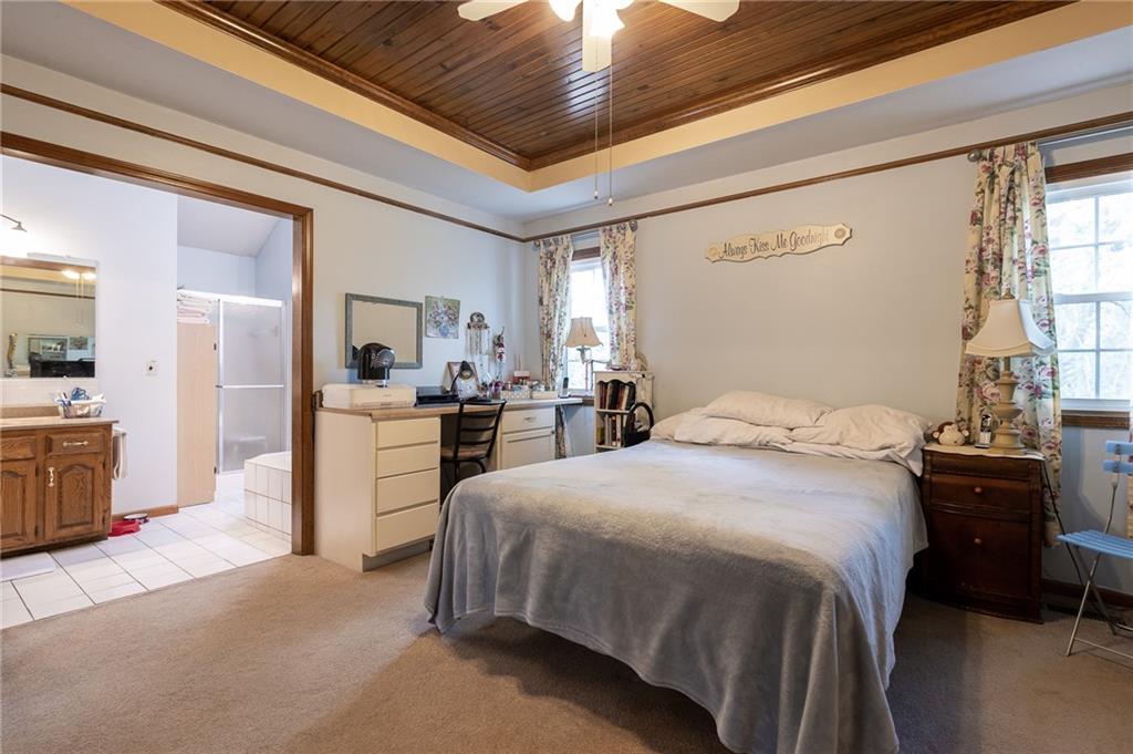 Welcome home to this charming 3-bedroom, 2-bath retreat offering 1,463 square feet of comfortable living space in a peaceful neighborhood. Step onto the inviting front porch, the perfect spot for morning coffee, and take in the quiet surroundings. Inside, you’ll find an open, light-filled layout with beautiful updates throughout. The living room features a cozy fireplace, ideal for relaxing on cool nights, while the kitchen offers granite countertops, stainless steel appliances, and plenty of space for cooking and gathering. The primary suite includes a private bath with a whirlpool tub and skylight, creating a calm space to unwind. Two additional bedrooms provide flexibility for family, guests, or a home office. Out back, a large, fenced yard offers endless possibilities — from backyard games to grilling on the spacious deck. Down the street, enjoy access to a beautiful wooded walking trail, with the lake peeking through the trees and a nearby park perfect for pets or play. This home combines everyday comfort with a touch of tranquility — ready for you to move in and make it your own.