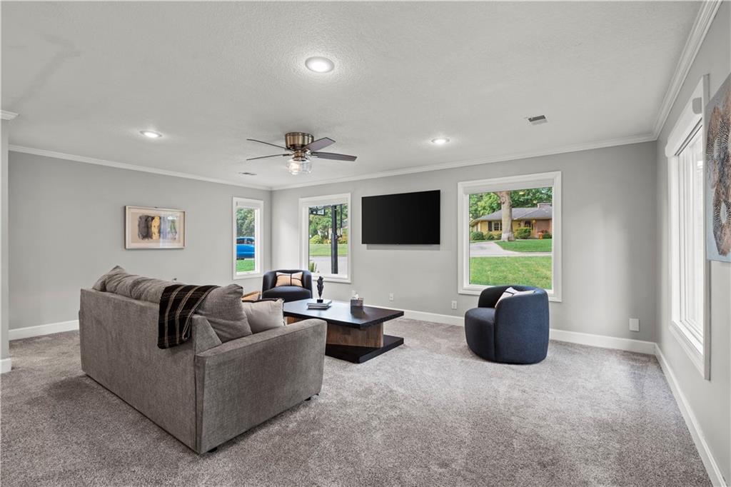 Designed for modern-day living and effortless comfort, this home offers over 4,300 square feet of well updated spaces with thoughtful design throughout. All bedrooms are on the main level, each with private en-suites that provide convenience and privacy. Multiple living areas create flexibility for entertaining or relaxing, while recent upgrades include a newer HVAC system, tankless water heater, replaced main line, and preventative improvements such as gutters, sump pumps, and buried drains. The kitchen has been refreshed with new counters, backsplash, hardware, and appliances, plus a mini-bar with a beverage fridge. Fresh paint, new carpet, and modern lighting complete the interior, while outside, a fenced yard, new landscaping, and a tuned-up sprinkler system add to the curb appeal. A rare three-car garage with EV charging, smart-home features, a security system, and updated window treatments round out this move-in-ready home. Additionally, it’s just minutes from shops, dining, and everyday conveniences.