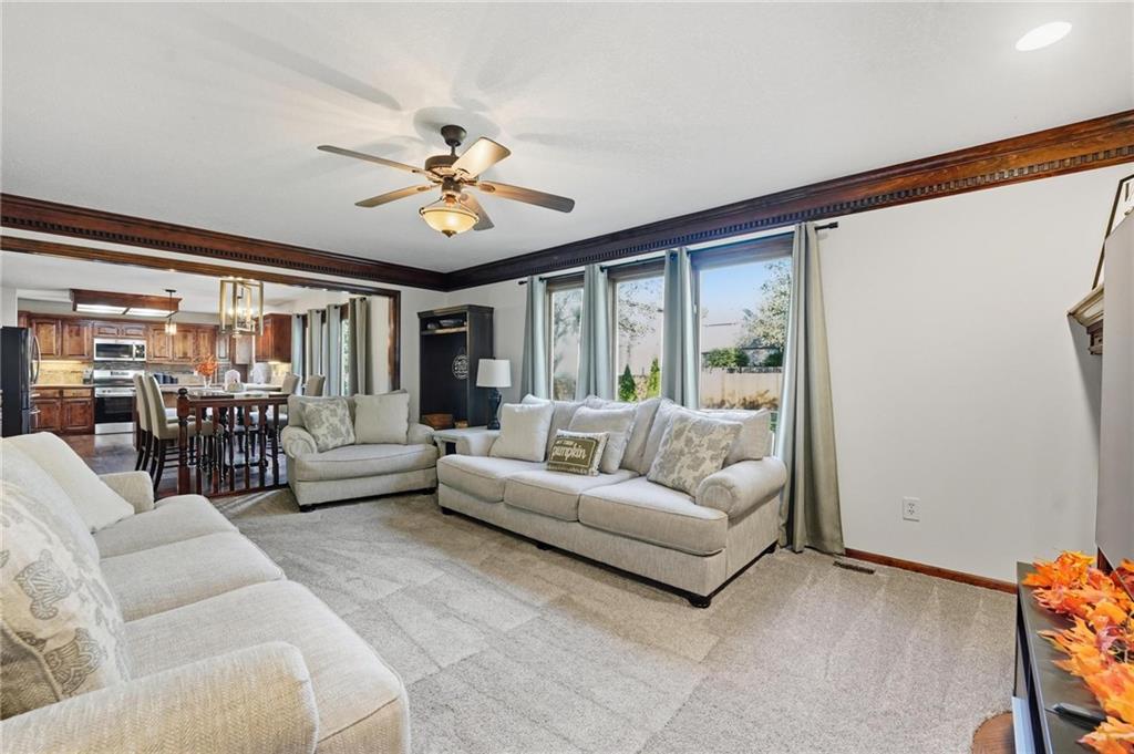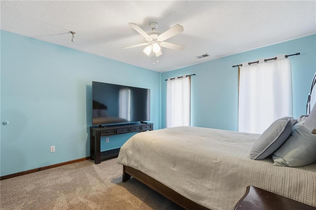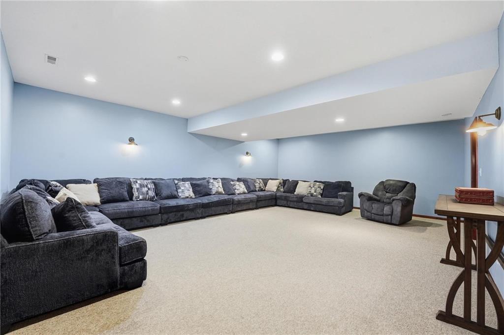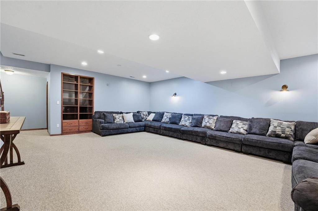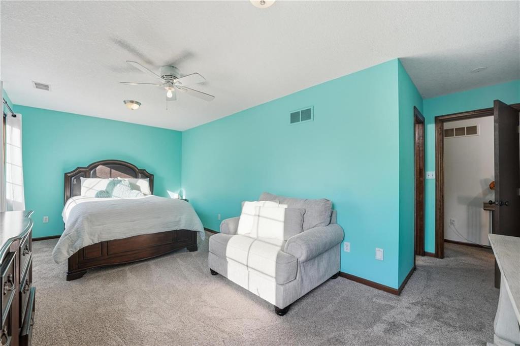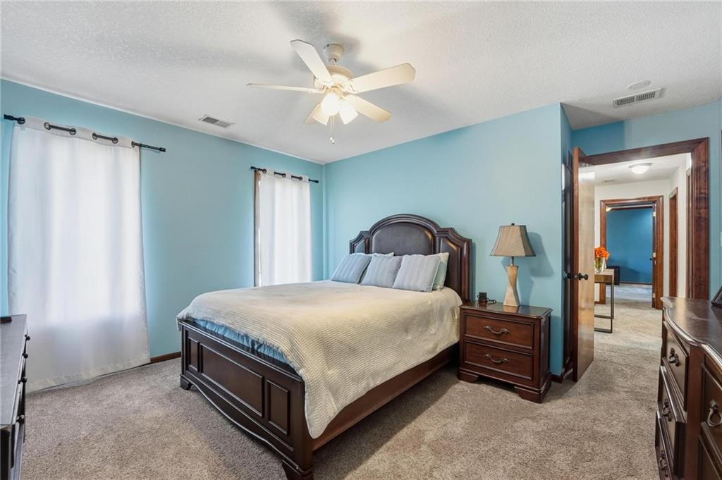 Gorgeous 2 story with new exterior paint, interior paint, carpet! The bedrooms on the 2nd level are HUGE, with walk-in closets. Welcoming front porch opens to a beautiful entry with wide plank floors that extend through to dining, kitchen & flex room on main level (could be 4th bedroom). The kitchen is a dream, tons of counter space, abundance of cabinets, upgraded s/s appliances, custom tile backsplash. Dining area has new fixture, large windows & full glass door out to composite deck, level backyard with newer privacy fence. The great room is open to the dining & kitchen, ideal for entertaining. Extensive crown molding, custom built-ins on either side of a gas fireplace, large windows overlooking backyard. A FULL bathroom on this level gives flexibility for the use of the main level room that could also be an office. Upstairs, the primary suite has a large sitting room space, luxury bath with updated tile flooring, double vanity, large jetted tub & separate shower, vaulted ceiling & skylight. Large walk-in closet, too! Spacious bedroom level laundry room has great storage, folding counter. 2 additional bedrooms are much larger than normal 2 story home, offering great walk-in closets & ceiling fans! Both bedrooms have private access to the shared bathroom! Lower level has 9' finished ceilings in the family room. Built-ins, custom lighting and over 700 sqft make it perfect for home theater space! Tons of unfinished storage space remains. High efficiency HVAC with humidifier is zoned for comfort summer or winter months. Central vac & 2 large electrical panels offer plenty of room for future expansion! The 3 car garage is much larger than most, 23' deep, 30' wide & 10' ceilings, lot of electrical outlets for charging tools, adding a workbench area.