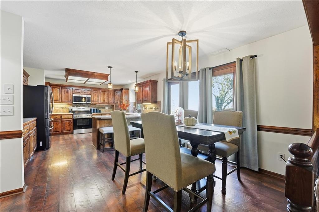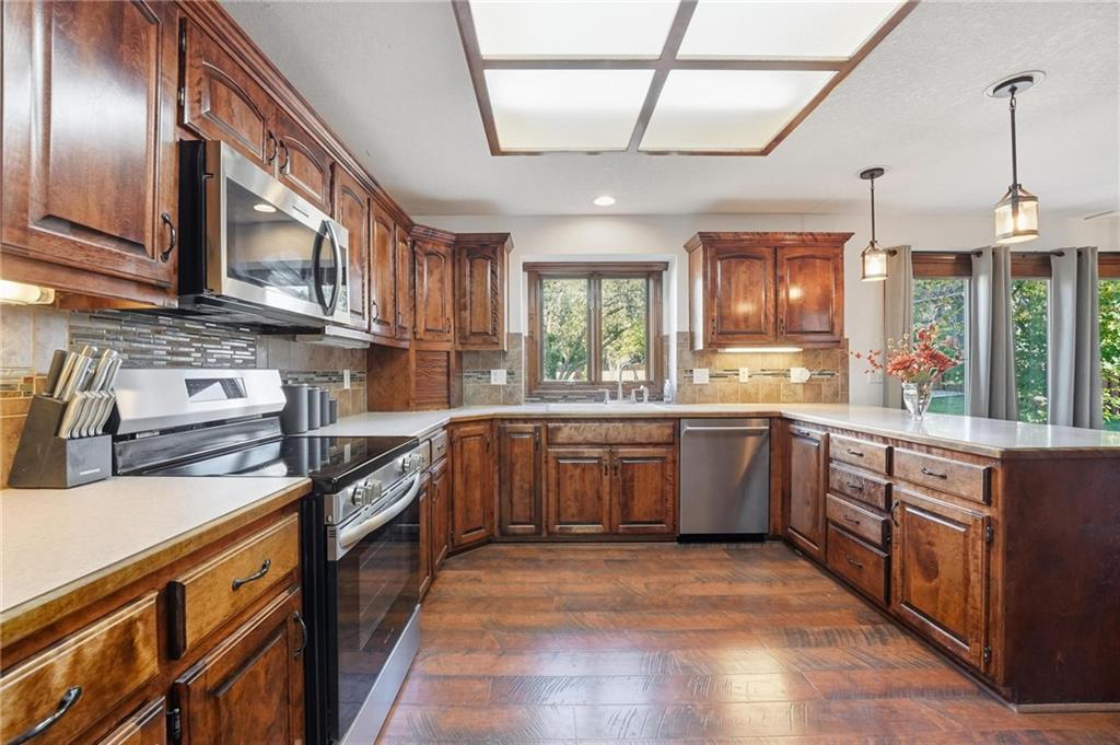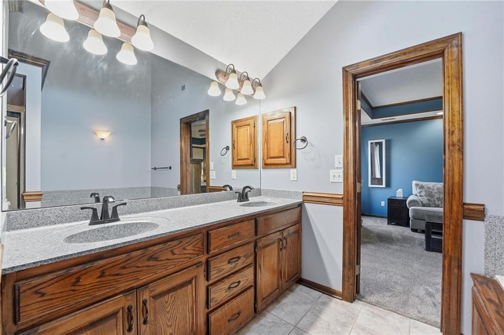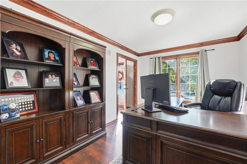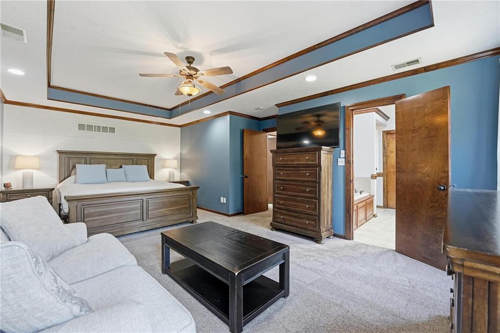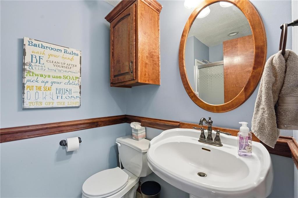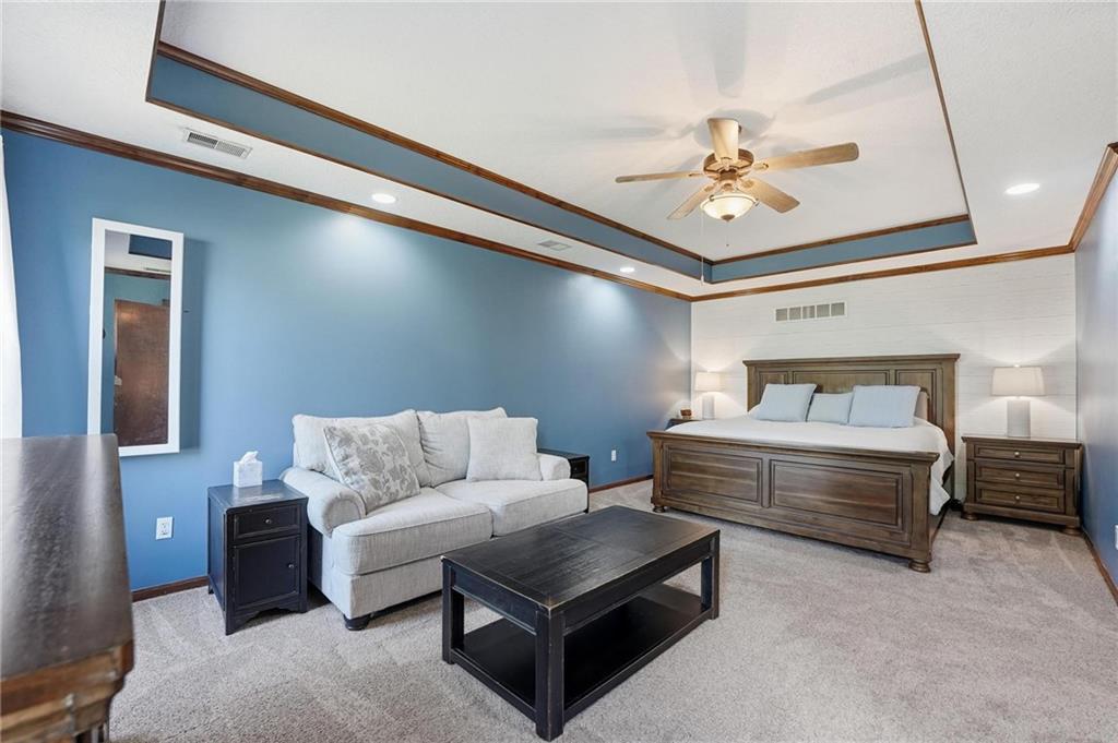 Gorgeous 2 story with new exterior paint, interior paint, carpet! The bedrooms on the 2nd level are HUGE, with walk-in closets. Welcoming front porch opens to a beautiful entry with wide plank floors that extend through to dining, kitchen & flex room on main level (could be 4th bedroom). The kitchen is a dream, tons of counter space, abundance of cabinets, upgraded s/s appliances, custom tile backsplash. Dining area has new fixture, large windows & full glass door out to composite deck, level backyard with newer privacy fence. The great room is open to the dining & kitchen, ideal for entertaining. Extensive crown molding, custom built-ins on either side of a gas fireplace, large windows overlooking backyard. A FULL bathroom on this level gives flexibility for the use of the main level room that could also be an office. Upstairs, the primary suite has a large sitting room space, luxury bath with updated tile flooring, double vanity, large jetted tub & separate shower, vaulted ceiling & skylight. Large walk-in closet, too! Spacious bedroom level laundry room has great storage, folding counter. 2 additional bedrooms are much larger than normal 2 story home, offering great walk-in closets & ceiling fans! Both bedrooms have private access to the shared bathroom! Lower level has 9' finished ceilings in the family room. Built-ins, custom lighting and over 700 sqft make it perfect for home theater space! Tons of unfinished storage space remains. High efficiency HVAC with humidifier is zoned for comfort summer or winter months. Central vac & 2 large electrical panels offer plenty of room for future expansion! The 3 car garage is much larger than most, 23' deep, 30' wide & 10' ceilings, lot of electrical outlets for charging tools, adding a workbench area.