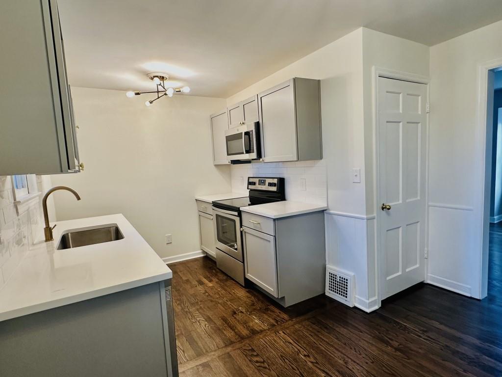 Recently updated 2 bed 1 bath turnkey home in the heard of Santa Fe Hills. Remodeled bathroom with new surround, vanity and fixtures. New hardwood floor refinishing. Remodeled kitchen with brand new cabinets, quartz countertops, backsplash and light fixtures with newer stainless steel appliances. Features an attached garage with paver patio that leads to a spacious, fenced backyard. Basement is semi-finished perfect for a play area, gym or workspace.