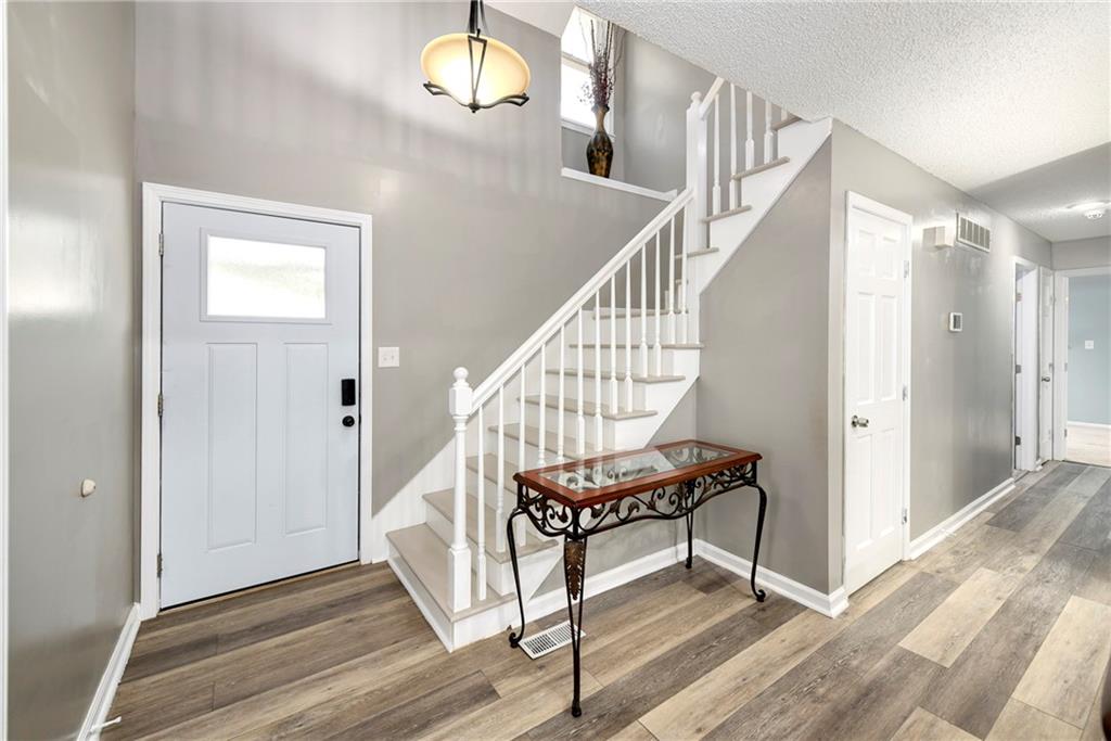 Welcome to this stunning three story home with 4-bedroom, 2.5-bath home featuring a beautifully finished walkout basement. The home boasts luxury vinyl and tile flooring throughout, with cozy carpet in some rooms. The kitchen is highlighted by granite countertops, and the inviting living room includes a gas fireplace with high vaulted ceiling. The master bedroom is a true retreat, featuring a gas fireplace, a walkout deck, and a spacious walk-in closet. The property also includes a two-level deck, vinyl siding and a fenced backyard, perfect for outdoor entertaining and gardening. Recent upgrades include a new backyard shed, new roof with gutters and a new 200-amp electrical panel, both installed just two years ago. Ideally located, this home is just a 10-minute walk to the outlet mall, and only minutes away from clinics, gas stations, highway access, and school districts.