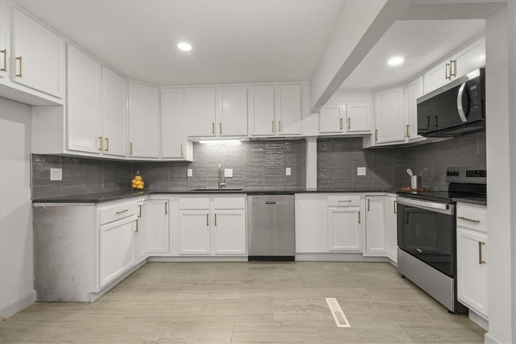 Discover a truly turn-key opportunity in this masterfully renovated ranch-style home, transformed from top to bottom with an expert designer's touch. This is your chance to own a property where all the hard work has been done, allowing you to simply move in and immediately enjoy a lifestyle of modern luxury and comfort. The open-concept living space is bathed in natural light, featuring rich, dark wood flooring that flows seamlessly throughout. At the heart of the home, the gourmet kitchen is a showpiece, boasting new white cabinetry, sleek quartz countertops, and a sophisticated gray subway tile backsplash, all perfectly accented by a suite of stainless steel appliances. Retreat to the serene bedrooms, which offer a peaceful escape with soft new carpeting and a contemporary color palette. The bathroom has been completely redesigned into a spa-like oasis, showcasing exquisite tile work, modern fixtures, and a stylish new vanity. The excitement continues downstairs in the spacious, fully finished basement, a highly versatile area ready to be anything you need—a media room, a home gym, or an additional family lounge. Outside, the home impresses with stunning curb appeal, thanks to fresh exterior paint and tasteful new landscaping. Enjoy the charm of a front deck and the utility of a generous backyard, complete with a newly painted storage shed. This property represents the perfect blend of quality craftsmanship and contemporary design.