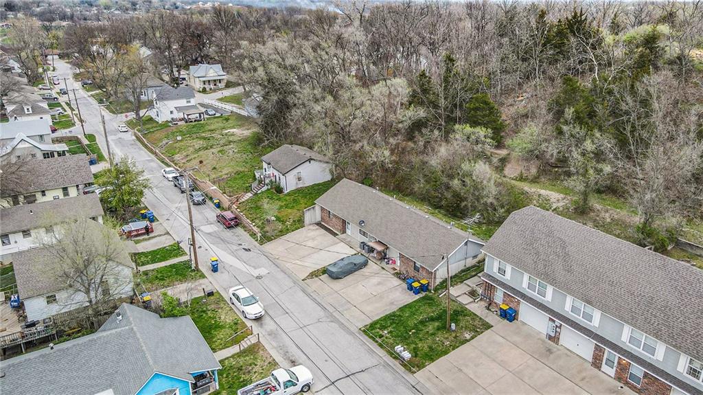 Investment Opportunity in the Heart of Smithville! Purchase for yourself and live on one side while collecting income from the other — or add this property to your growing portfolio! Perfect for both first-time investors and seasoned owners, this earth-contact duplex offers low utilities (tenant responsibility) and a convenient location just blocks from Downtown Smithville’s boutique shopping, restaurants, schools, highway access, Smithville Lake, and KCI Airport. Each side features 2 bedrooms and 1 bath, offering approximately 800 sq. ft. per unit, along with a parking pad accommodating 2+ cars on each side. Recent updates within the last two years include new flooring and paint, ensuring modern comfort and low maintenance. Inside, the living room welcomes you with a pass-through window to the eat-in kitchen, creating a natural flow for entertaining. The kitchen provides ample cabinet and counter space, plus a laundry closet and utility area. The primary bedroom easily fits larger furniture, while the secondary bedroom offers cozy comfort and generous closet storage. Unit A is currently rented month-to-month for $1,100/month, while Unit B is vacant and move-in ready — perfect for an owner-occupant or new tenant. With room to increase rent and minimal expenses, this property delivers both convenience and opportunity. Don’t miss your chance to start or grow your investment business — this one won’t last long!