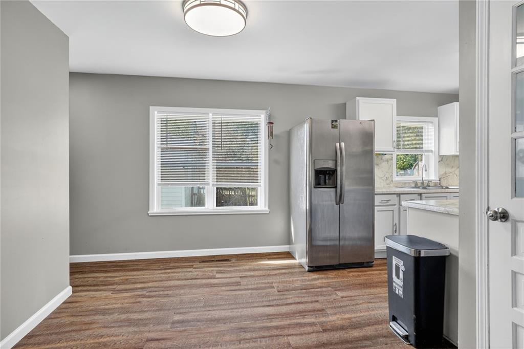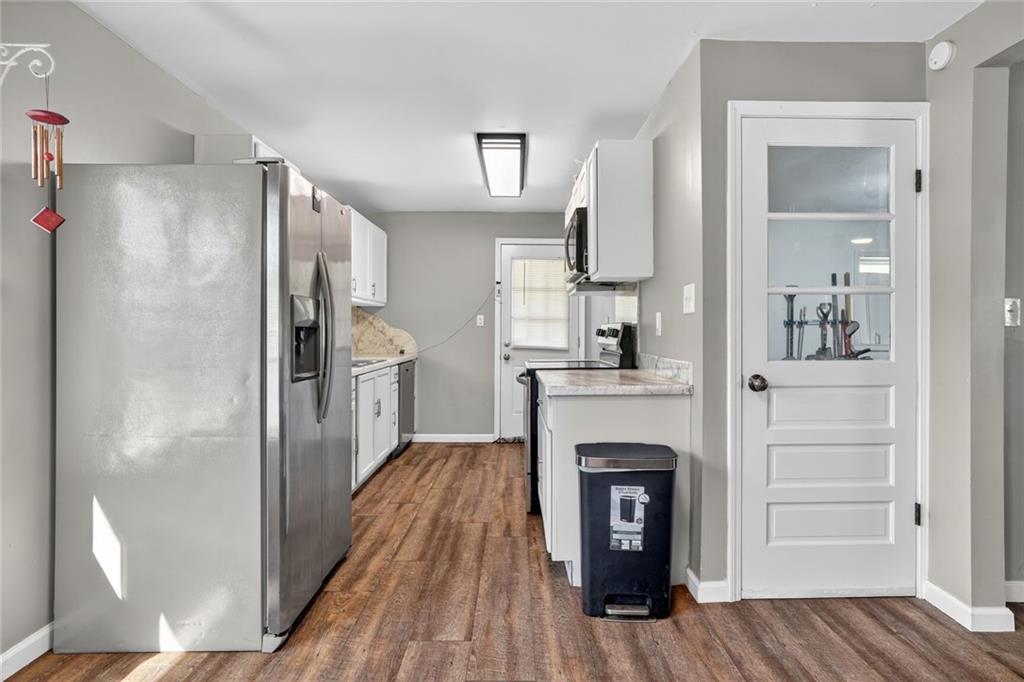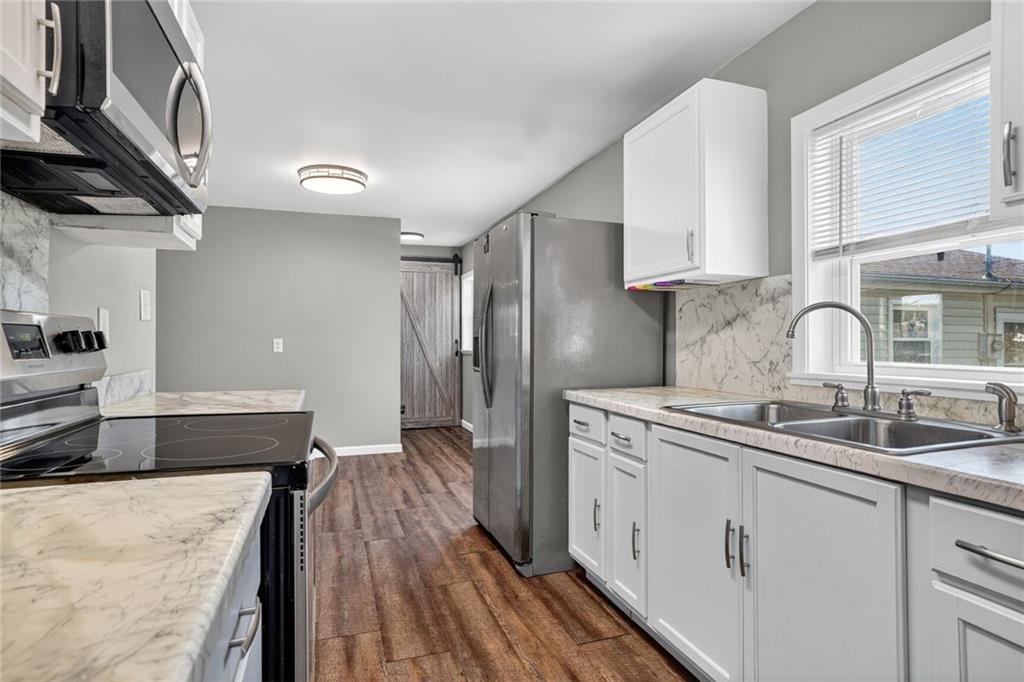 Adorable 1960's ranch previously remodeled and move in ready! Easy care laminate flooring throughout, with a spacious living room featuring a big picture window and a wood burning fireplace. The kitchen has white cabinetry and nice, stainless appliances. The laundry is conveniently located off the kitchen, sharing a barn door with the spacious pantry. The three bedrooms are light and bright with nice size closets and spacious rooms. The hall bath has been remodeled with a large tub and newer cabinets! Lots of new here with a new roof and HVAC system all in the last 3 years! An attached garage and a side deck finish off this great home. Set on a corner lot with lots of room to play or entertain. Just minutes from downtown Cameron, this is a must see!