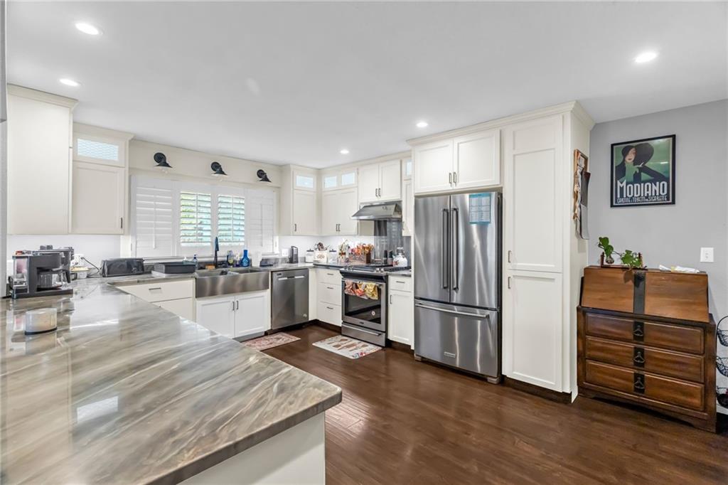 Step inside this fully refreshed ranch where smart design meets stylish living. The open-concept kitchen—transformed in a 2019 renovation—features sleek lighted cabinets (inside and out) and flows seamlessly into the dining and living areas, creating the perfect setting for entertaining and everyday comfort. A brand-new high-impact roof (2024) with matching gutters and downspouts gives this home major curb appeal and long-term peace of mind. Inside, enjoy year-round comfort thanks to the energy-efficient HVAC system (installed 2020). The main floor offers both the Primary suite and guest bedroom, while the lower level adds another bedroom and full bath—perfect for guests, hobbies, or extra living space. This home blends charm, modern upgrades, and Baldwin City convenience—ready for you to move right in and make it your own! Close to downtown shops, dining, and community events!