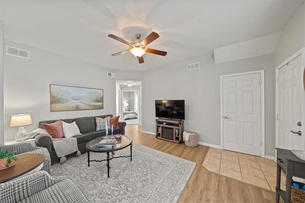 Welcome to this beautifully updated condominium offering the perfect blend of comfort, style, and convenience. Step into the heart of the home—a stunning kitchen featuring sleek quartz countertops, generous counter space, and eye-catching zellige tile backsplash, open floor plan ideal for both everyday living and entertaining. Luxury vinyl plank flooring flows throughout the living areas, adding durability and contemporary charm. Enjoy the inviting front patio—perfect for your morning coffee or evening unwind. Inside, you’ll find two generously sized bedrooms and two spacious full bathrooms, including a primary suite with a walk-in closet for ample storage. This well-maintained community offers resort-style amenities including a clubhouse, fitness center, and sparkling pool. All of this in a fantastic location close to shopping, dining, and major commuter routes. Don’t miss this opportunity to own a move-in ready home with great amenities and in a wonderful location!!