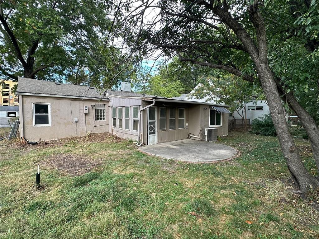 Location! Location! Location! Nestled on a quiet street between State Line Rd & Ward Parkway just south of 75th Street. Walk to the Prairie Village grocery store or over to the Waldo shops & restaurants! Great investor home to flip or rent or first-time buyer to fix up. Great space for the area with over 1300 SF ranch plan! Use it as 3 bedrooms, or as 2 bedroom with a large family room. Large living room, formal dining room, and an enclosed porch. All appliances stay. Replacement Thermopane windows. Selling As-Is.