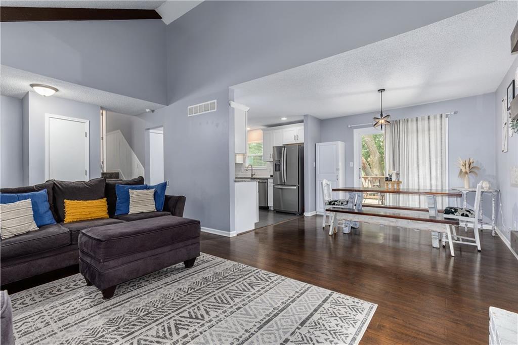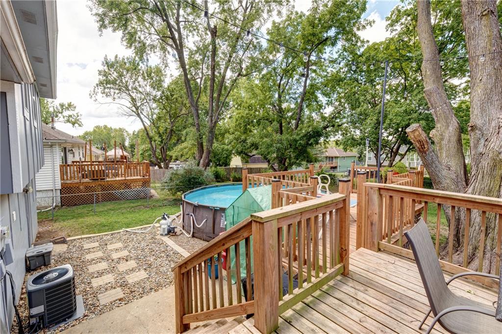 Step inside this beautifully updated home featuring 3 spacious bedrooms and 2.5 bathrooms. Gleaming hardwood floors flow throughout the open main level, where vaulted ceilings create a bright and airy feel. The recently remodeled kitchen shines with new cabinetry, stainless steel appliances, and plenty of counter space for cooking and entertaining. Both bathrooms have been thoughtfully updated with modern finishes, adding comfort and style. Outside, enjoy the large deck overlooking a sparkling pool and a fully fenced yard—perfect for relaxing, grilling, or gatherings with friends and family. This move-in-ready home blends charm, functionality, and outdoor living all in one inviting package.
