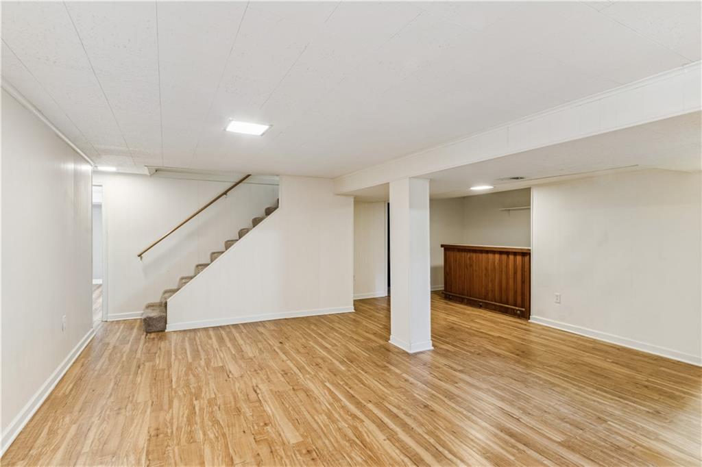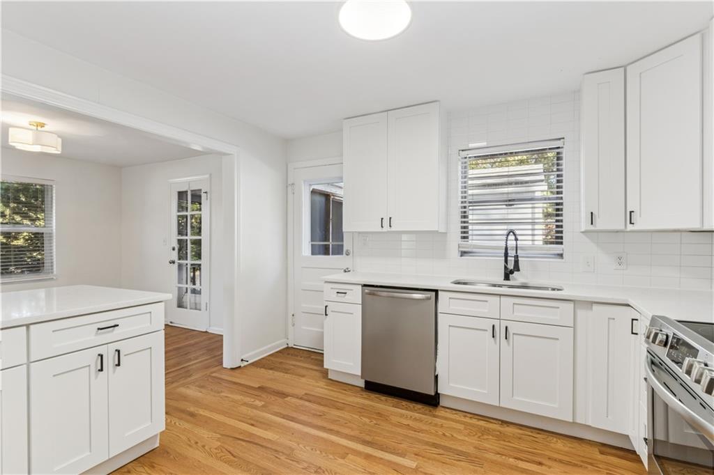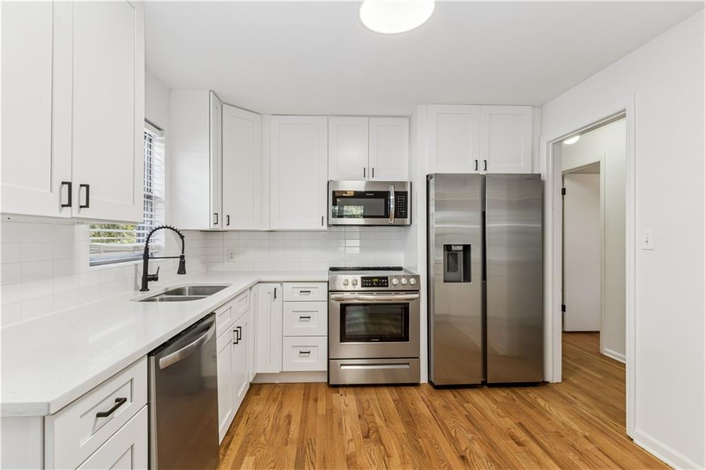 Charming and renovated brick and stucco ranch situated on a large, fenced corner lot. Open floorplan with lots of natural light and beautifully refinished hardwood floors thruout. Main level laundry hookups. Remodeled kitchen features stunning quartz counter tops, soft close cabinets, breakfast bar and newer stainless steel appliances (including refrigerator and built-in microwave). Completely redone crisp white bathroom with a quartz vanity. Screened-in porch off living room. Finished lower level family room, a 2nd full bath and a 4th non-conforming bedroom/office (has a closet). One car detached garage with close access to house. Two-car driveway. Roof and A/C are newer. Poured concrete foundation. Great location with close proximity to award winning schools, restaurants and shopping.