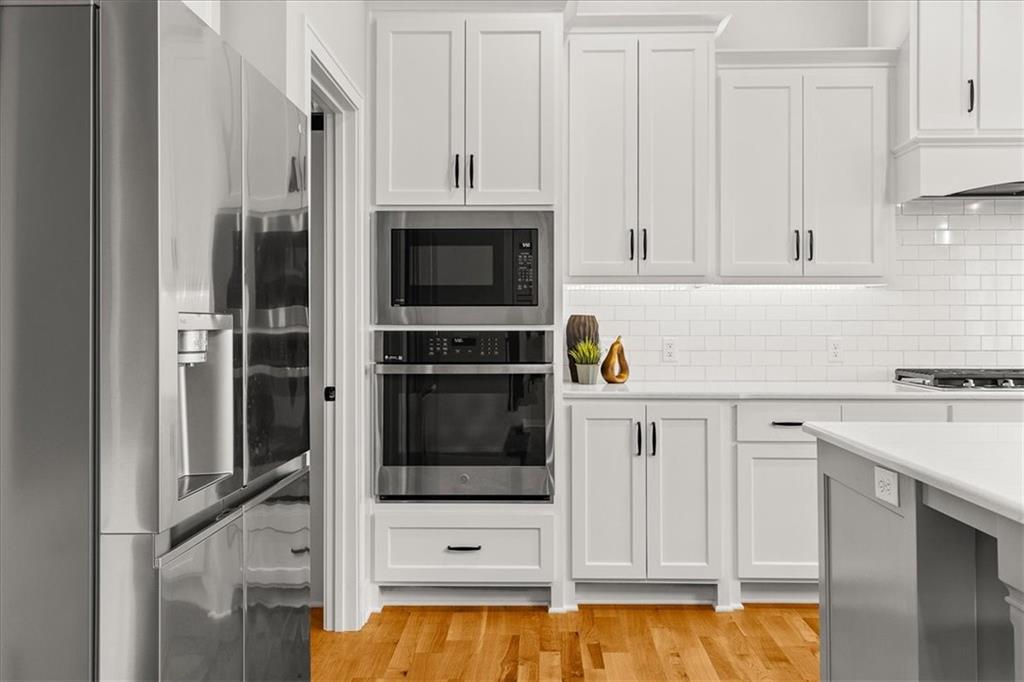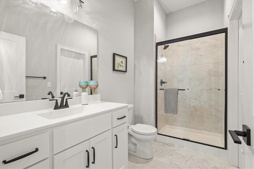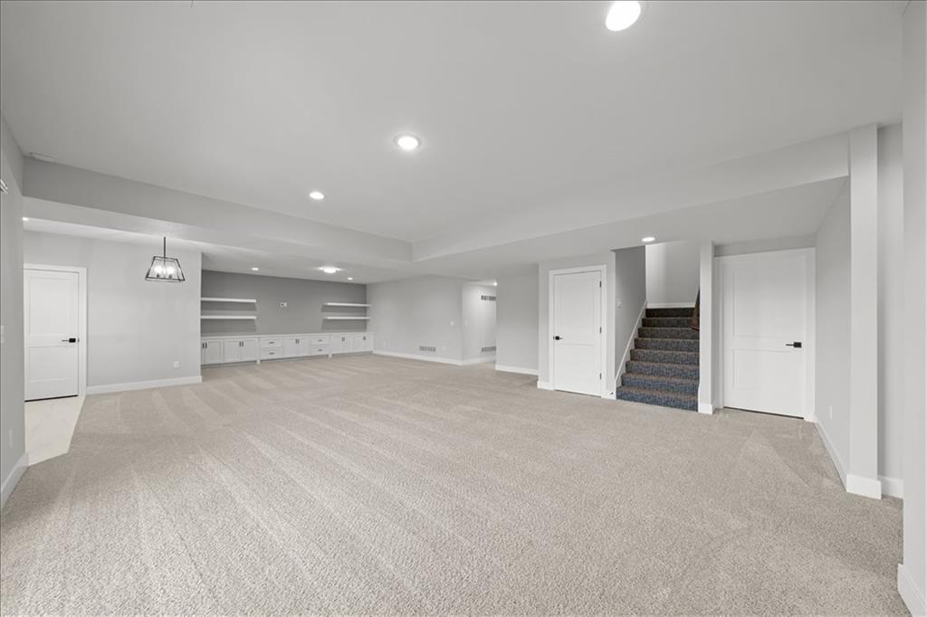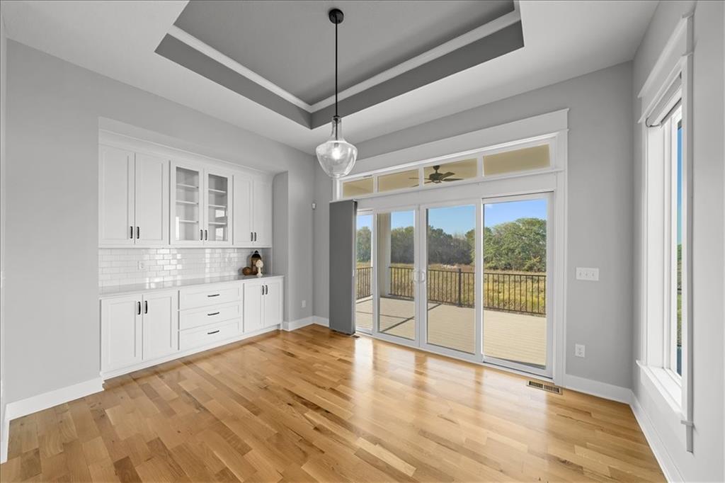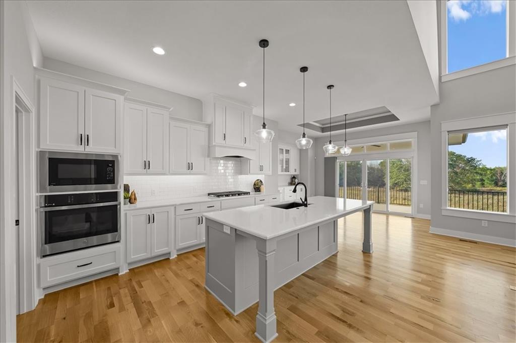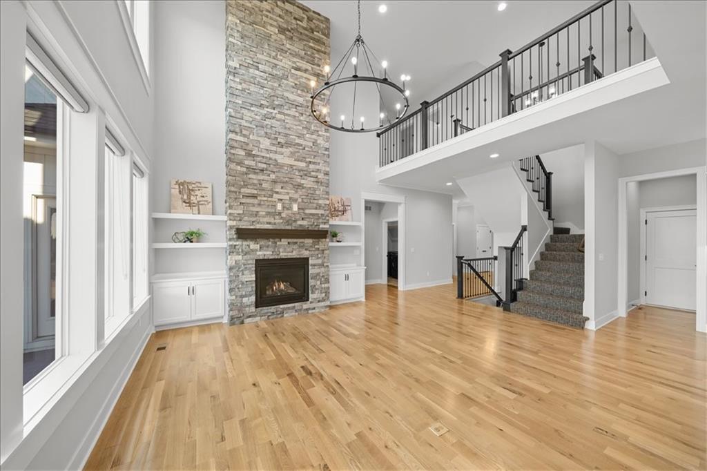 Unbeatable value in the Blue Valley School District! This stunning 1.5-story home is priced nearly $170K below county appraisal and offers exceptional space, style, and comfort. Highlights include a dramatic two-story stone fireplace, wide-plank hardwood floors, and a chef’s kitchen featuring an upgraded gas cooktop, massive walk-in pantry with a second oven, and custom cabinetry throughout. The main-level primary suite is a true retreat with peaceful views, a spa-inspired bath, and convenient laundry hookups just off the bedroom. Upstairs, each secondary bedroom includes its own walk-in closet and private bath for ultimate comfort and privacy—plus a second laundry area for added convenience. The finished walkout lower level expands your living space with a spacious rec room, wet bar, guest suite with ensuite bath, and an additional half bath. Step outside to the expansive, partially covered deck to enjoy beautiful sunsets and serene views. Community amenities include a resort-style pool, clubhouse, and fishing pond—all within minutes of top-rated schools, shopping, and dining. Quick closing available—don’t miss this incredible opportunity!
