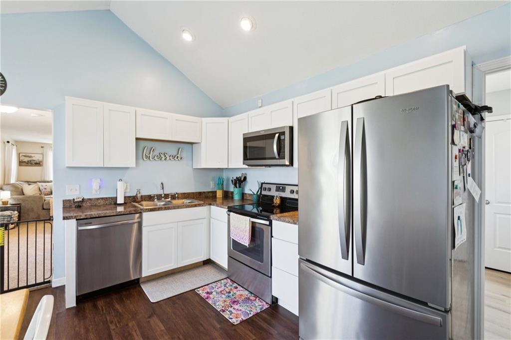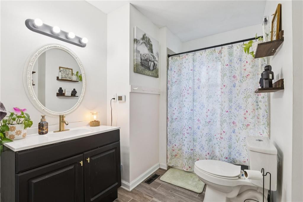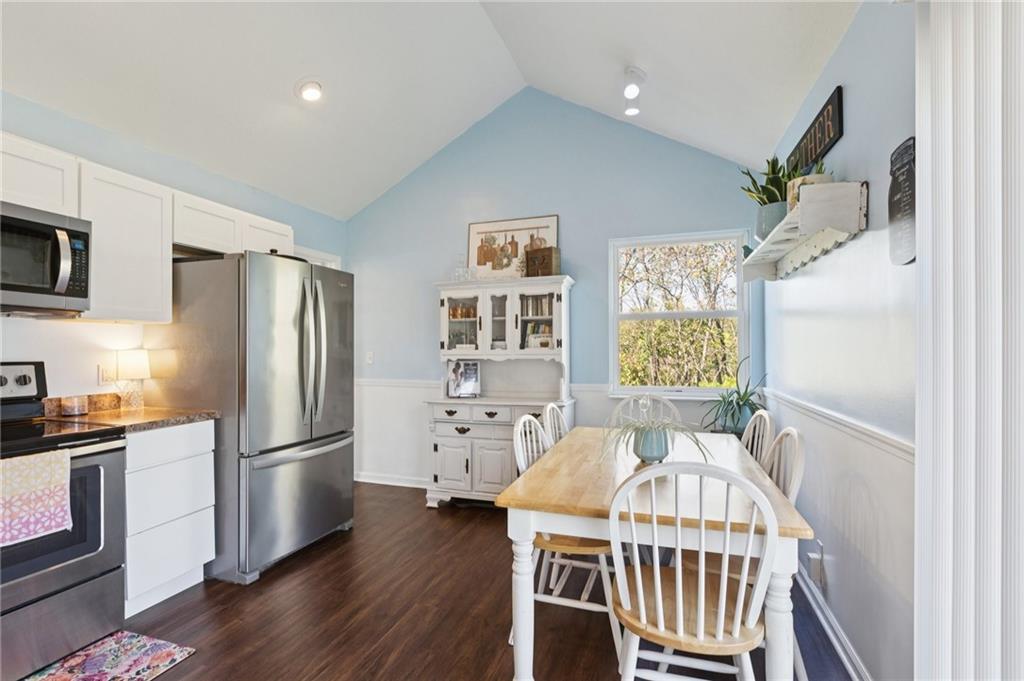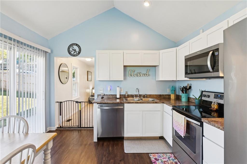 Welcome to the sweetest little bungalow you ever did see! This three bedroom charmer is filled with warmth, character and thoughtful updates that make it feel like home from the moment you walk in. Step onto the darling front porch and into a cozy living space featuring fresh new carpet and new luxury vinyl plank throughout. You will appreciate all of the modern updates this home has to offer, including an updated kitchen, stainless steel appliances, vinyl windows and heated tile floors in the bathroom. Enjoy the convenience of main-level laundry, a newer air conditioner and a layout that maximizes every inch of space. Outside, the wooden privacy fence creates a peaceful retreat in the yard with a side deck off the kitchen, perfect for quiet evenings or morning coffee. There is plenty of storage in the unfinished basement and large detached 2 car garage. This cozy storybook home truly lives larger than its size. Come see for yourself-you'll fall in love as soon as you step through the door!