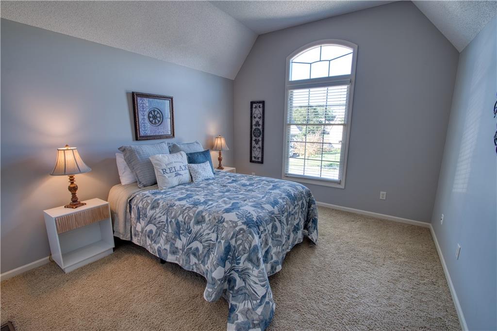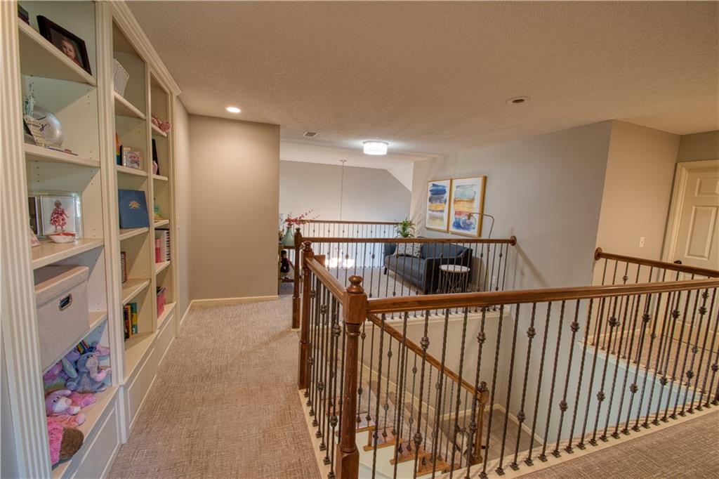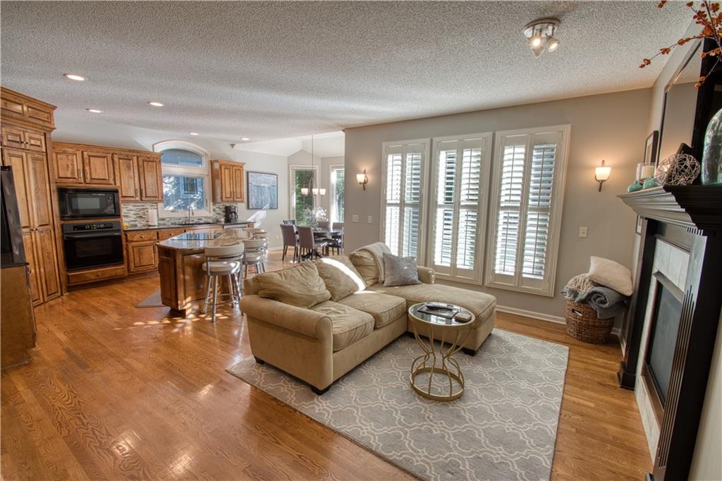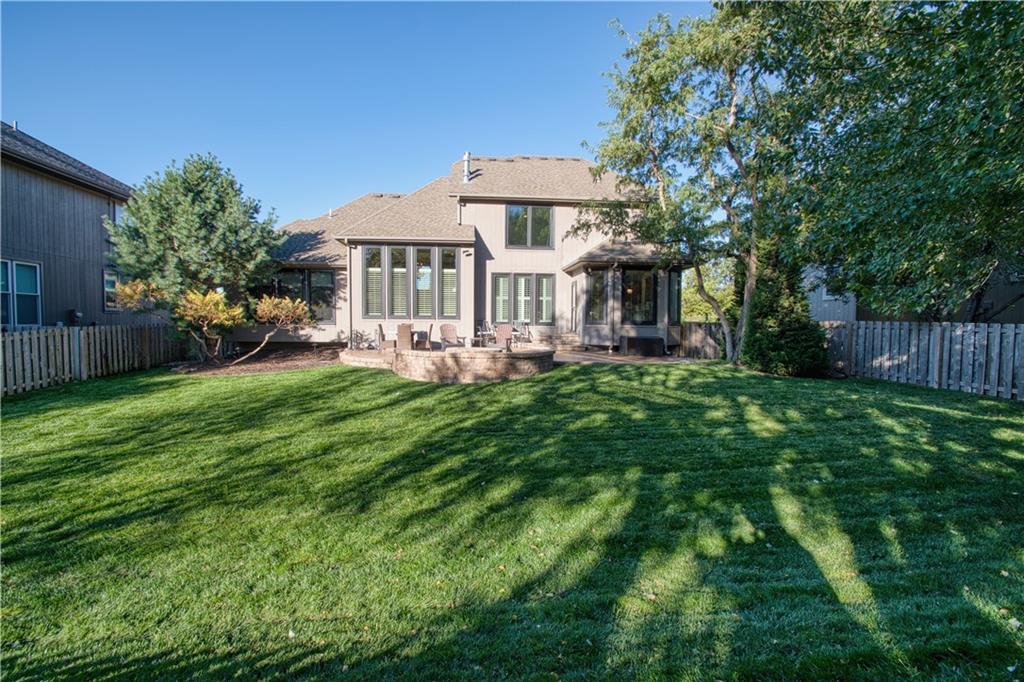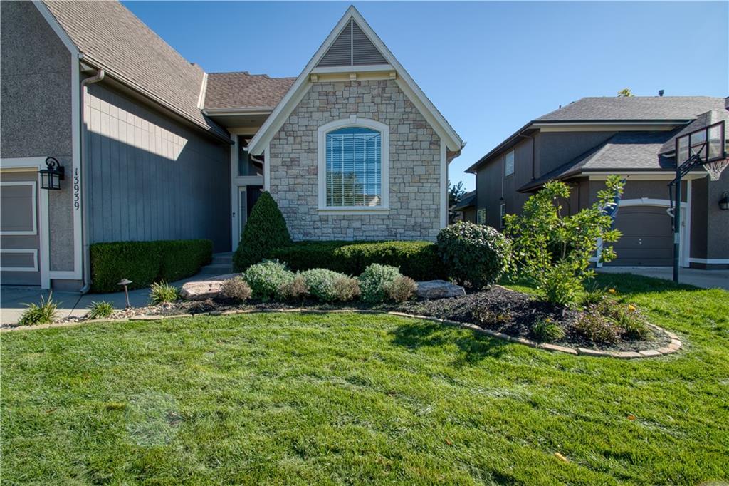 Stunning 1½-story home in the award-winning Blue Valley School District! The main-level primary suite offers a luxurious retreat with electric blinds, a spa-inspired bath and expansive walk-in closet. The soaring ceilings in the great room create a bright, open feel that flows seamlessly into the gourmet kitchen. The Kitchen features: granite countertops, beautiful cabinetry, large walk-in pantry perfect for cooking and entertaining. The finished basement adds incredible living space with a private office, workout room, bar area, and all-new LVP flooring throughout. Upstairs you have a gorgeous loft area and three bedrooms, all with adjoining bathrooms. Step outside to a spacious concrete stamped patio and custom fire pit ideal for outdoor gatherings and relaxing evenings. Other features include: New HVAC, Plantation shutters, Newer Fibrex windows though most of the home, New Water Heater, hardwood flooring, gas fireplace, mud room, laundry on main level, large wet bar. Ideally located on a dead-end street with little through traffic and near top-rated schools, shopping, and restaurants, this home blends elegance, comfort, and convenience in one exceptional package.