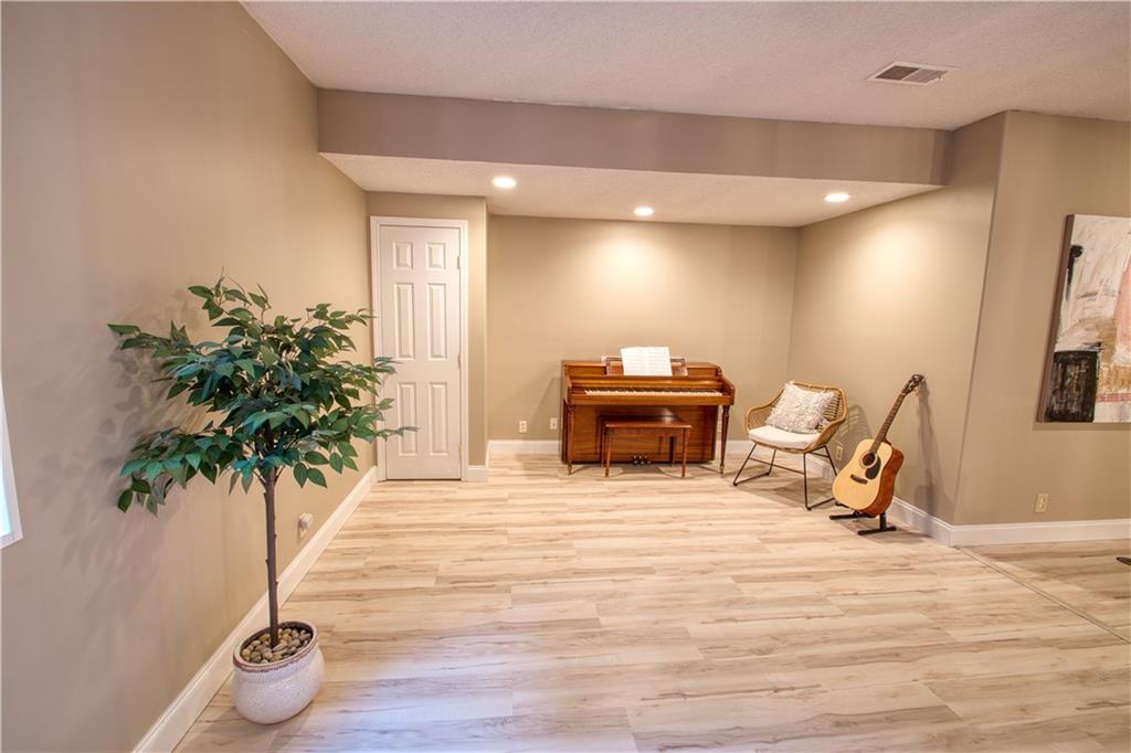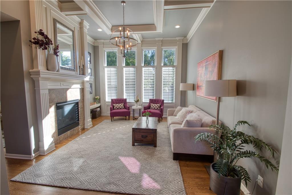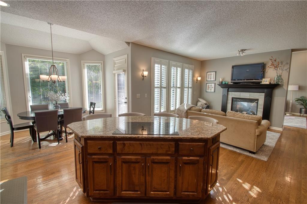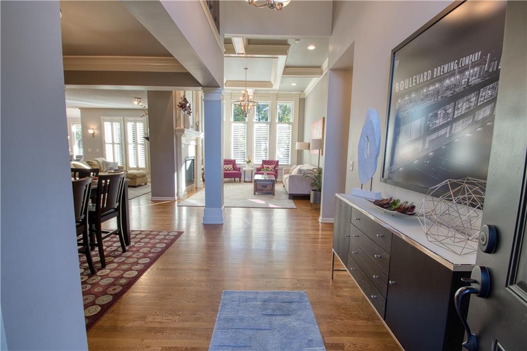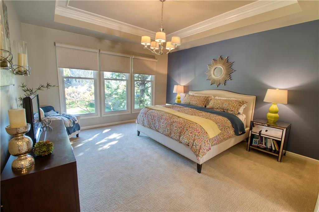 Stunning 1½-story home in the award-winning Blue Valley School District! The main-level primary suite offers a luxurious retreat with electric blinds, a spa-inspired bath and expansive walk-in closet. The soaring ceilings in the great room create a bright, open feel that flows seamlessly into the gourmet kitchen. The Kitchen features: granite countertops, beautiful cabinetry, large walk-in pantry perfect for cooking and entertaining. The finished basement adds incredible living space with a private office, workout room, bar area, and all-new LVP flooring throughout. Upstairs you have a gorgeous loft area and three bedrooms, all with adjoining bathrooms. Step outside to a spacious concrete stamped patio and custom fire pit ideal for outdoor gatherings and relaxing evenings. Other features include: New HVAC, Plantation shutters, Newer Fibrex windows though most of the home, New Water Heater, hardwood flooring, gas fireplace, mud room, laundry on main level, large wet bar. Ideally located on a dead-end street with little through traffic and near top-rated schools, shopping, and restaurants, this home blends elegance, comfort, and convenience in one exceptional package.