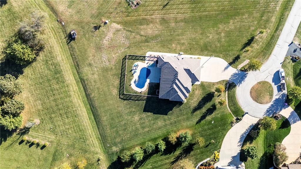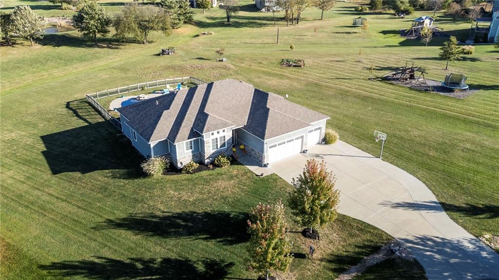 You'll be thoroughly impressed by this stunning custom-built ranch home in the sought-after Bur Oak Estates, perfectly situated on 1.21 acres with picturesque views overlooking Lake Miola. This 4-5 bedroom, 3.5-bath residence is a flawless fusion of high-end upgrades and modern elegance, offering a spacious, open floor plan that ensures an ideal flow for both daily life and hosting. The heart of the home is the showstopper gourmet kitchen, featuring custom cabinetry, a generous island, granite countertops, and a massive walk-in pantry, all flowing into the inviting great room. The great room is a masterpiece of design, showcasing expansive windows, vaulted beamed ceilings, and a beautiful rock gas fireplace, setting the stage for ultimate relaxation. Retreat to the luxurious primary en-suite, which boasts a tray ceiling, a huge tiled shower, an elegant freestanding tub, double vanities, a walk-in closet, and private access to the deck for a seamless indoor/outdoor escape. The main level also provides two additional spacious bedrooms, a full bathroom, and a dedicated office. Downstairs, the finished lower level is an entertainer's paradise with a large family room anchored by an impressive Wet Bar with granite countertops, plus a comfortable fourth bedroom and a fifth nonconforming one, while the converted fourth-car garage now serves as a dedicated workout gym. Outside, the estate is an entertainer's dream-the fenced 1.21-acre lot features a fiberglass saltwater heated pool surrounded by a huge patio with a firepit, a composite deck, and lush landscaping, offering the complete luxury package. Also enjoy all the amenities Lake Miola offers, including boating, swimming, trails, and camping.