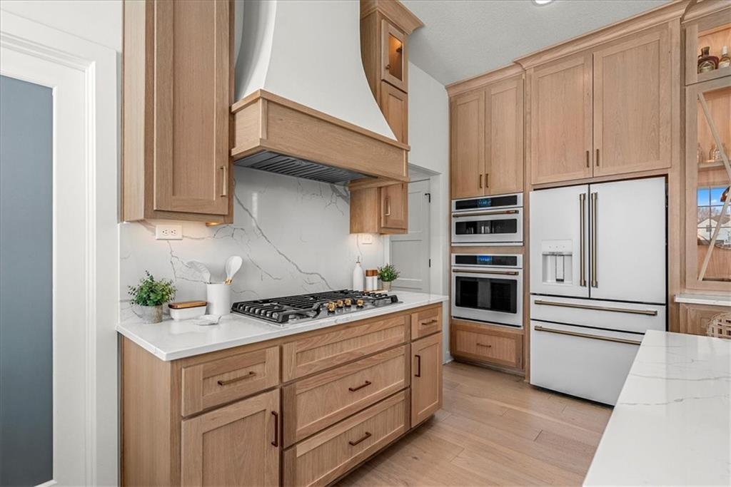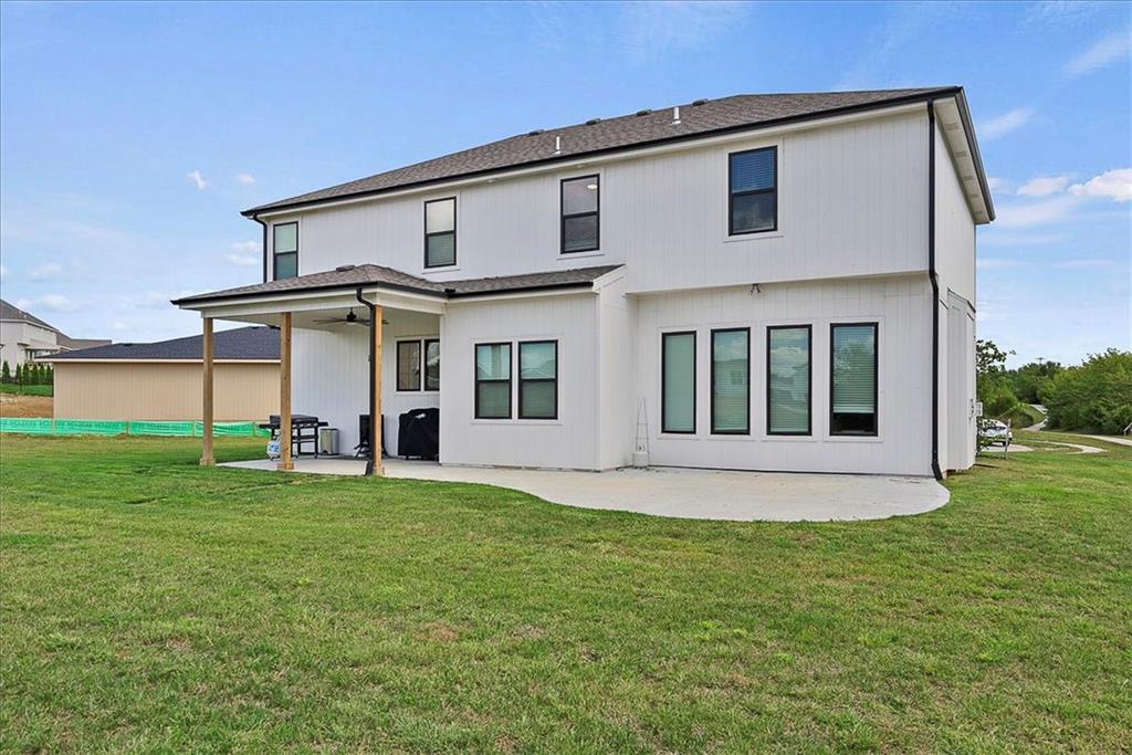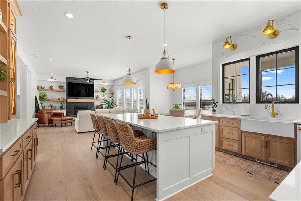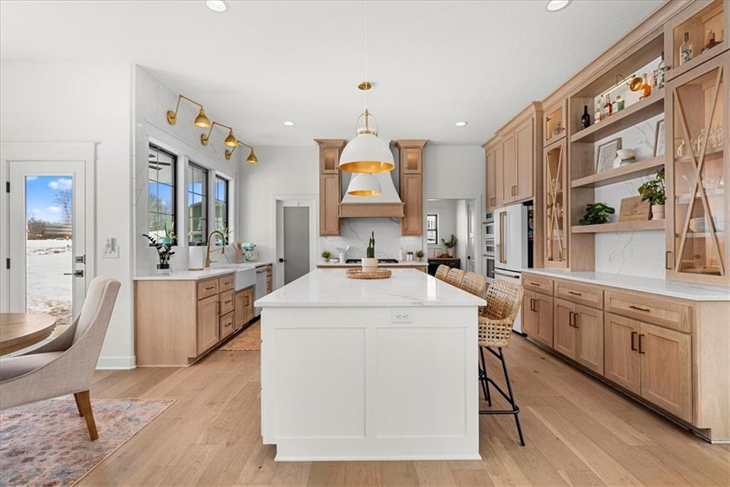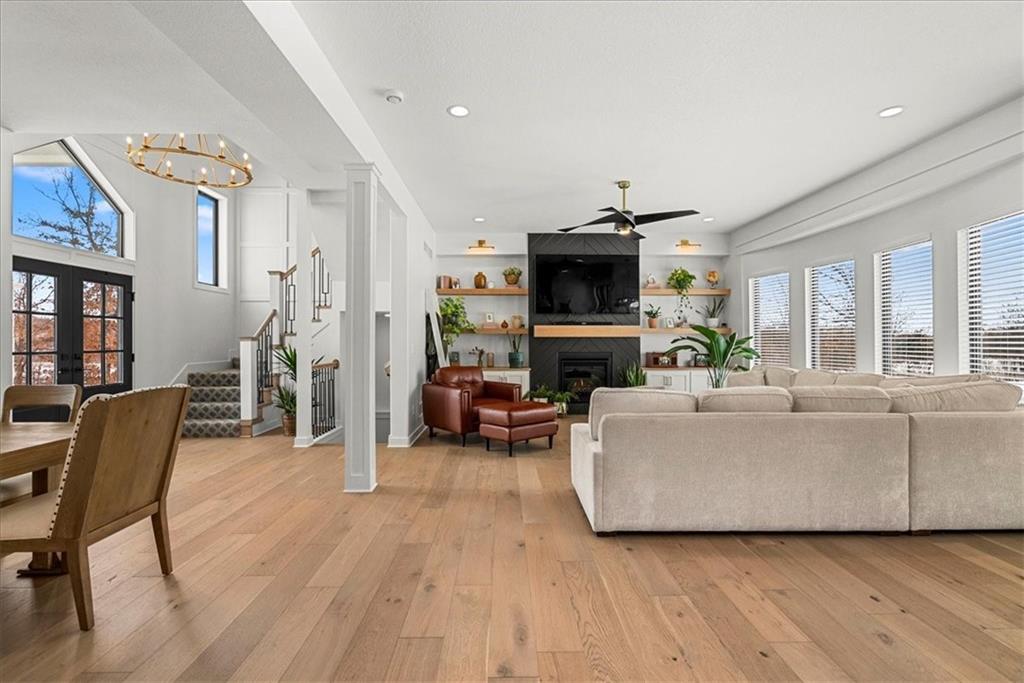 Only 20 min away from Downtown KC, in award winning Park Hill School District. Experience LUXURY, and PRIVACY in this stunningly custom designed 4-bedroom, 3.5-bath modern farmhouse—set on the LARGEST and most PRIVATE lot in the neighborhood, nearly HALF AN ACRE with no neighbors on three sides! Step inside to discover engineered hardwood floors, soaring 10 ft ceilings, and designer-grade finishes throughout. The chef’s kitchen commands attention with custom white oak cabinetry, quartz countertops that extend to the ceiling for a seamless backsplash (no subway tile here!), designer Café appliances with custom ordered handles to match the cabinet hardware and an extended island offering additional seating and storage—perfect for gatherings and entertaining. The spacious living room is anchored by a bold black fireplace surrounded by custom shelving and natural wood accents, creating warmth and sophistication in every detail. Upstairs, retreat to the luxurious primary suite featuring a freestanding soaking tub, luxury high gloss tile, double vanities, and an expansive walk-in closet. Designed for comfort and EFFICIENCY, the home features two A/C units, upgraded heating systems, and an oversized water heater. The extra-tall garage easily accommodates trucks or large SUVs—rare for the area. Outdoors, enjoy unmatched privacy and open green space in the extended newly poured patio, with the sellers including a FULL IRON FENCE INSTALLATION around the backyard, ideal for pets or play. Basement is ready for your finishing touches! Add a full guest suite, bar area, rec room, etc. Many possibilities! The Reserve at Riverstone is in a prime Northland location, with top-rated schools, easy access to highways, the airport, shopping, & restaurants. There is a community swimming pool & trails.