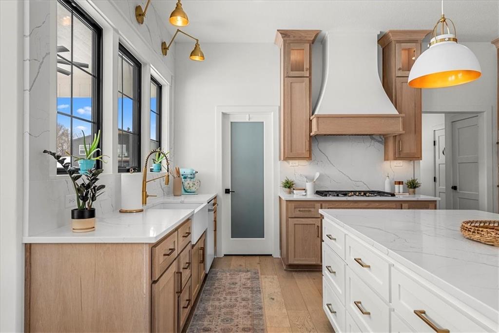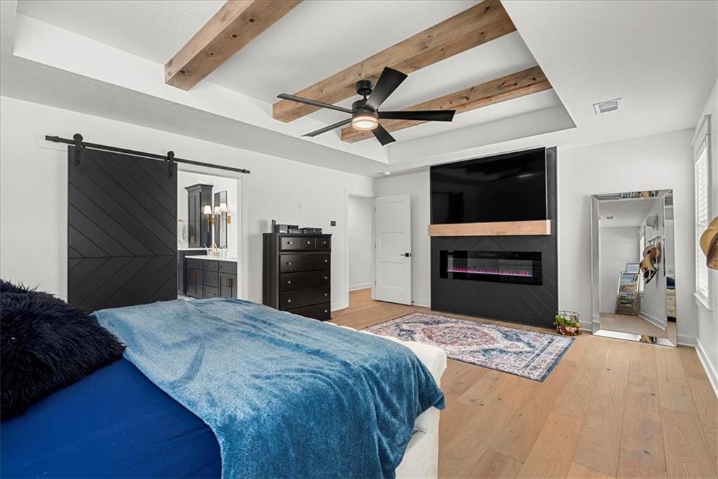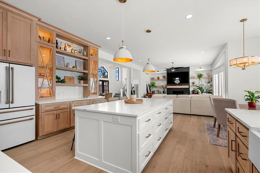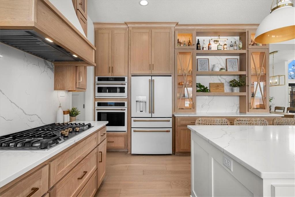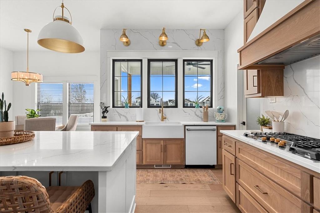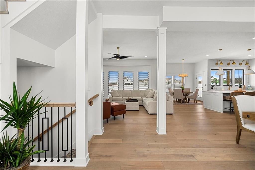 Only 20 min away from Downtown KC, in award winning Park Hill School District. Experience LUXURY, and PRIVACY in this stunningly custom designed 4-bedroom, 3.5-bath modern farmhouse—set on the LARGEST and most PRIVATE lot in the neighborhood, nearly HALF AN ACRE with no neighbors on three sides! Step inside to discover engineered hardwood floors, soaring 10 ft ceilings, and designer-grade finishes throughout. The chef’s kitchen commands attention with custom white oak cabinetry, quartz countertops that extend to the ceiling for a seamless backsplash (no subway tile here!), designer Café appliances with custom ordered handles to match the cabinet hardware and an extended island offering additional seating and storage—perfect for gatherings and entertaining. The spacious living room is anchored by a bold black fireplace surrounded by custom shelving and natural wood accents, creating warmth and sophistication in every detail. Upstairs, retreat to the luxurious primary suite featuring a freestanding soaking tub, luxury high gloss tile, double vanities, and an expansive walk-in closet. Designed for comfort and EFFICIENCY, the home features two A/C units, upgraded heating systems, and an oversized water heater. The extra-tall garage easily accommodates trucks or large SUVs—rare for the area. Outdoors, enjoy unmatched privacy and open green space in the extended newly poured patio, with the sellers including a FULL IRON FENCE INSTALLATION around the backyard, ideal for pets or play. Basement is ready for your finishing touches! Add a full guest suite, bar area, rec room, etc. Many possibilities! The Reserve at Riverstone is in a prime Northland location, with top-rated schools, easy access to highways, the airport, shopping, & restaurants. There is a community swimming pool & trails.