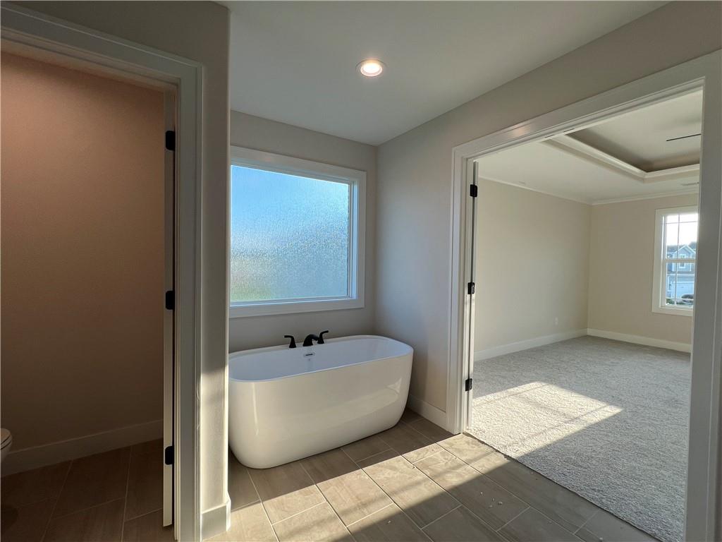 NEARING COMPLETION!! Final photos coming soon! Dream lot with the perfect balance of lake view and greenspace access. The 5th bedroom on the main floor could be the ideal place for a guest or office. Incredible kitchen with oversized granite island and upgraded, level 2 quartz tops. Grand prep-style pantry with tons of storage. Custom trim wainscot accent wall in the dining room. Soaring trim accent wall in the stairwell. Oversized Master Bedroom Suite includes an amazing a customizable lighted vault. Attached Master Bath includes an oversized vanity with a custom framed mirror, quartz vanity top upgrade, and matte black plumbing faucets. Sleek freestanding tub and 3 vertical levels of storage in the master closet with custom-designed shelving. Large secondary bedrooms, all with walk-in closets. Secondary baths also include matte black plumbing upgrades and quartz vanity top upgrades. A sprinkler system is included in the sodded areas with remote port access. Custom 2-inch faux wood blinds are included. Garage door openers and a keypad is also included. Taxes and Square footage are estimated.