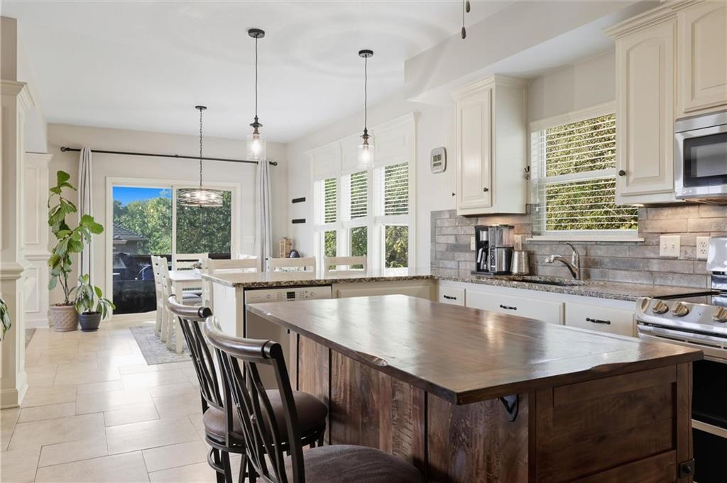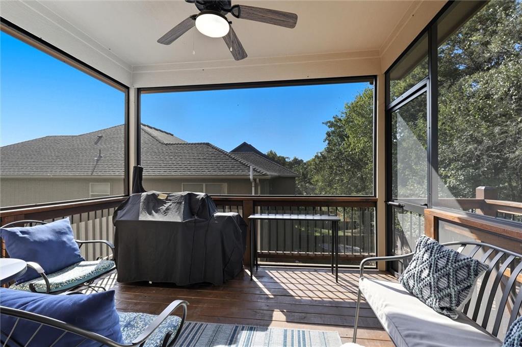 Spotless and exceptionally well-maintained 2-story home in the highly desirable Platte County School District! The open-concept floorplan is perfect for entertaining and everyday living. The spacious great room features a fireplace with raised hearth, surrounded by an elegant trim package and abundant natural light. The kitchen showcases granite countertops, a breakfast bar, stainless steel appliances, and a walk-in pantry, a perfect blend of beauty and function. Adjacent dining space flows effortlessly to the living area for seamless gatherings. Upstairs, a landing office nook offers a convenient workspace or study area. The spacious master suite features double vanities, a walk-in shower with dual shower heads, and a huge walk-in closet. The large laundry room is also on the bedroom level and includes built-ins and a sink for extra convenience. Bedrooms 2 and 3 Share a Jack and Jill bath The walk-out lower level is the ideal man cave, rec room, or guest space, complete with soaring ceilings and a full bath. Enjoy outdoor living on the screened, covered deck overlooking the treed lot and privacy-fenced backyard. Deck stairs lead to the lower-level patio, providing multiple outdoor entertaining options. The beautiful landscaping enhances curb appeal, while the epoxied garage floor adds a clean, finished look. Mounted TVs stay! Pride of ownership is evident throughout this one is truly move-in ready!