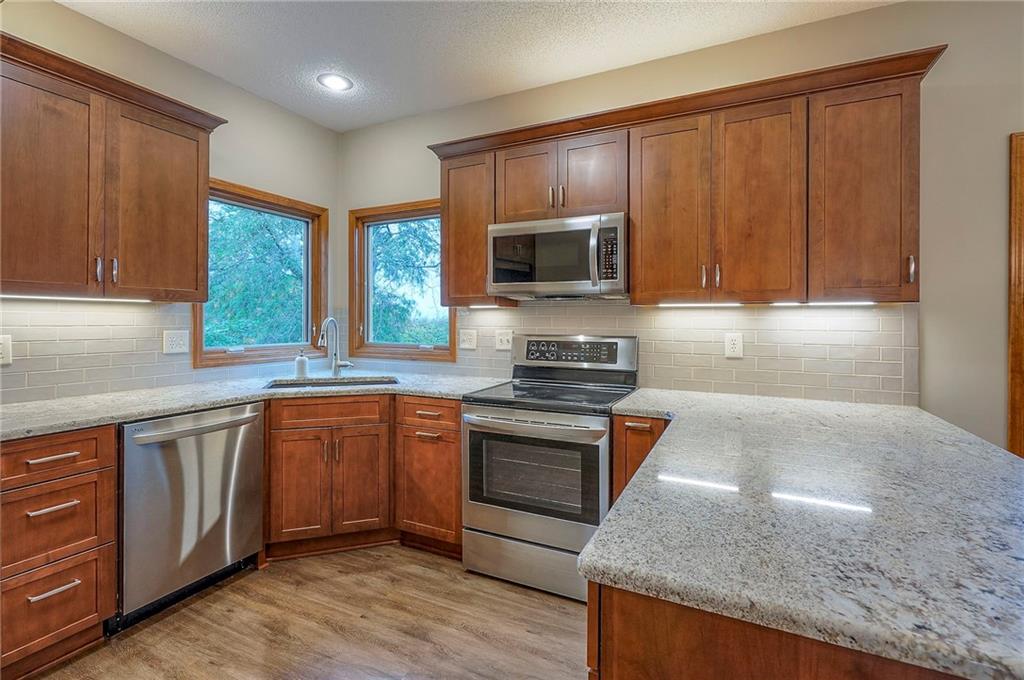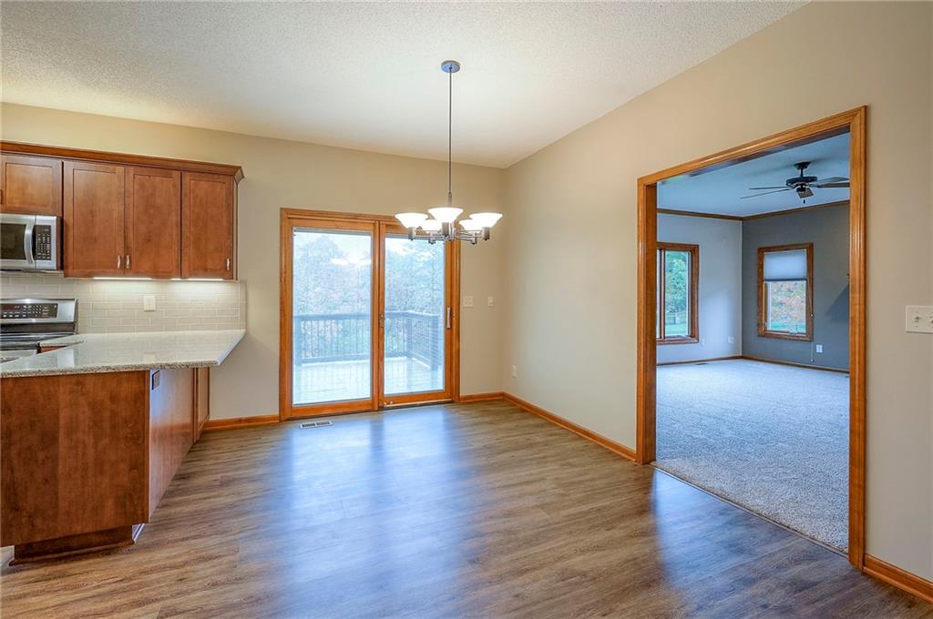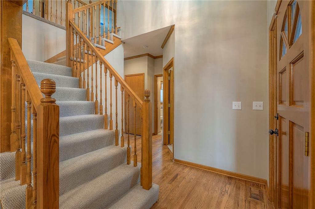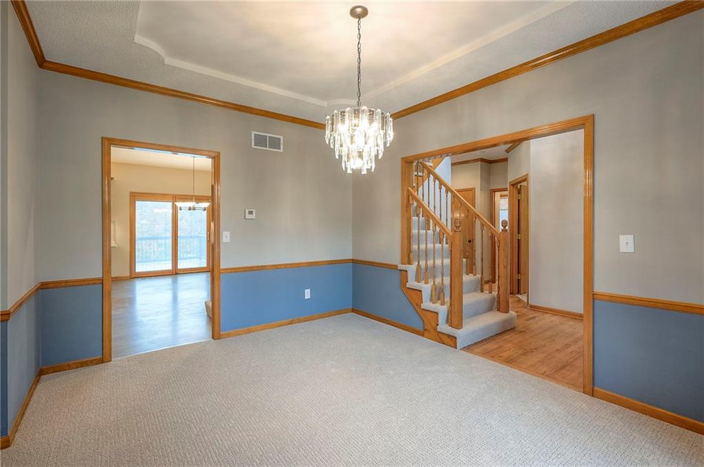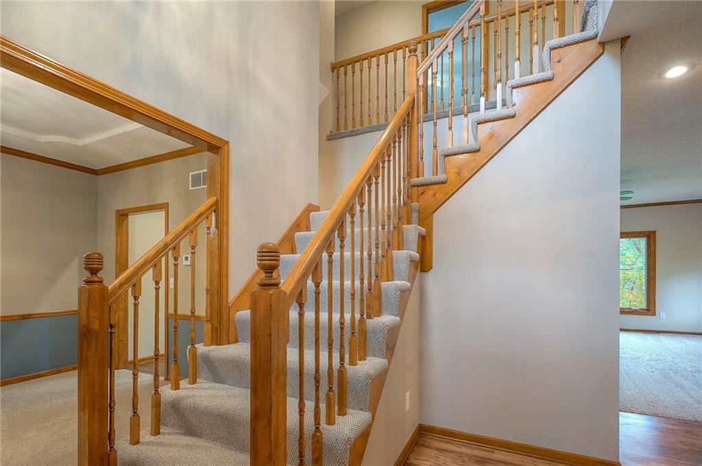 Well-maintained, updated, one-owner home in sought-after Lake Ridge Meadows subdivision could be yours in time for the holidays! Located within the award-winning Blue Springs School District and walking distance to Delta Woods Middle School, this 2,415 ft. home (after master closet/storage renovation) boasts tons of natural light, Pella casement windows and new carpeting throughout. The main floor welcomes you w/ 9’ ceilings, a large LR with stone vent-free gas fireplace; cozy & functional eat-in kitchen w/ granite countertops, SS appliances, convection oven & Blanco sink; formal dining room; dedicated study; ½-bath, and laundry room where you’ll appreciate the extra storage. Upstairs you will find 4 good-sized bedrooms and a hall bath. The master bedroom’s inset ceiling with crown molding takes the room up a notch, and you’ll enjoy an on-suite bath complete w/ jetted tub and double vanity—and entry to the vast master closet. The spacious walk-out basement has more than ample room for a workshop or gym and is ready for your unique ideas to expand living space. The fully fenced, treed/landscaped back yard is a 1/2 acre, offering both a patio and large deck, perfect for entertaining or serene relaxation. And, the enlarged 2-car garage provides ample space for yard tools and mower. You’ll enjoy easy highway access, nearby lakes/walking trails/parks and shopping & dining experiences galore. Newer roof, windows, interior and exterior paint, HVAC, hot water tank and sump pump. Schedule your showing and see this one for yourself!