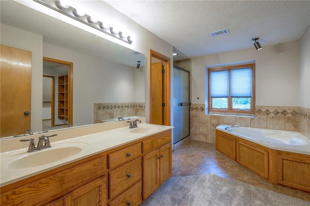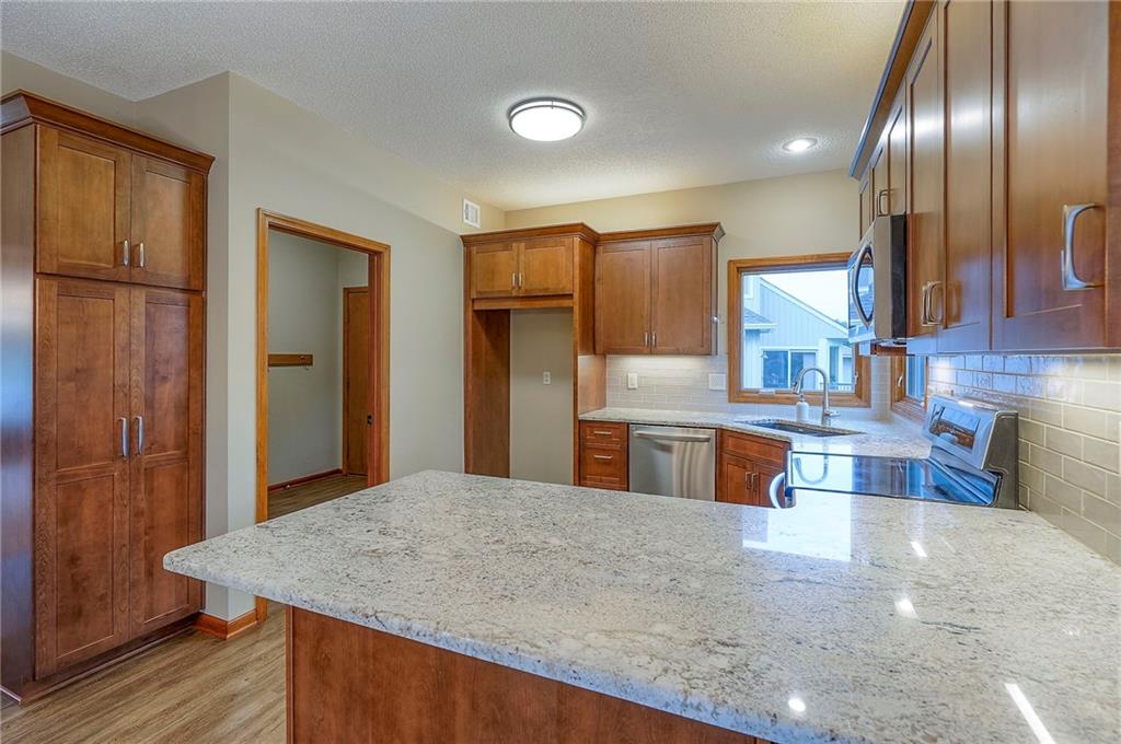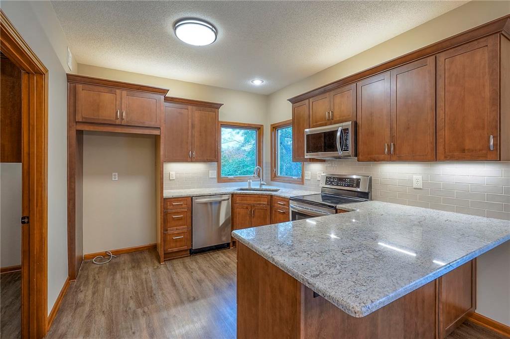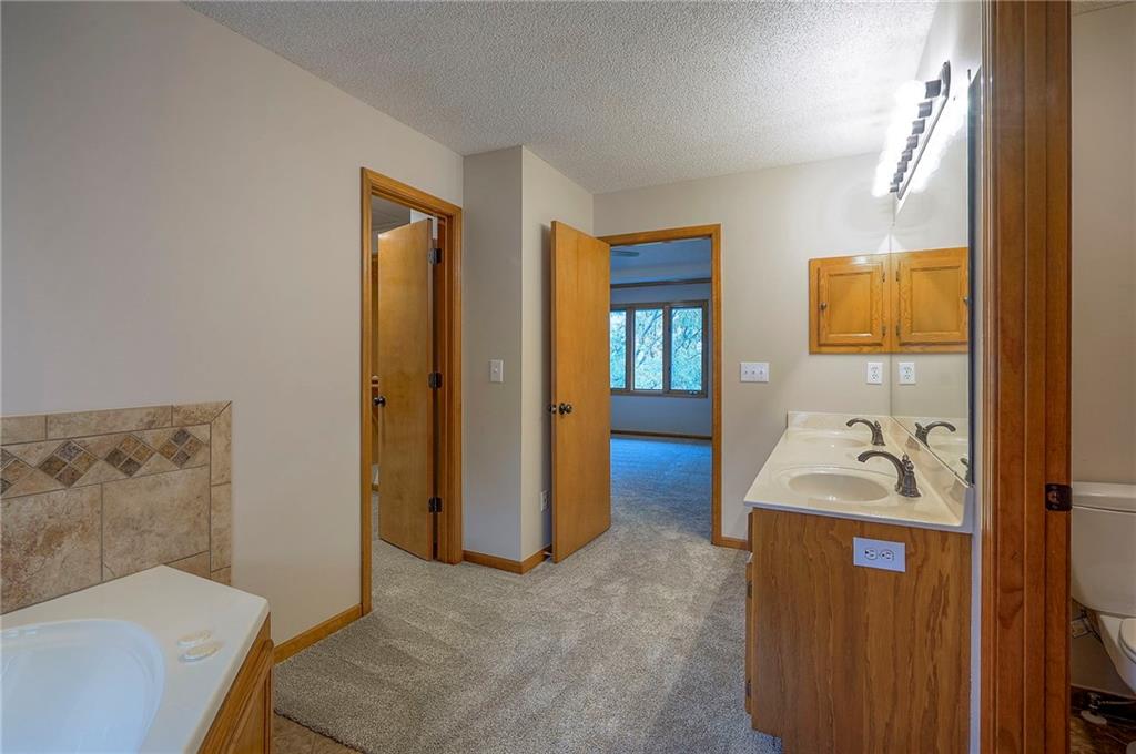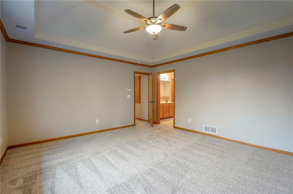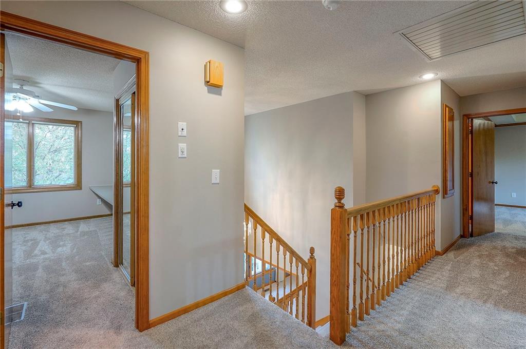 Well-maintained, updated, one-owner home in sought-after Lake Ridge Meadows subdivision could be yours in time for the holidays! Located within the award-winning Blue Springs School District and walking distance to Delta Woods Middle School, this 2,415 ft. home (after master closet/storage renovation) boasts tons of natural light, Pella casement windows and new carpeting throughout. The main floor welcomes you w/ 9’ ceilings, a large LR with stone vent-free gas fireplace; cozy & functional eat-in kitchen w/ granite countertops, SS appliances, convection oven & Blanco sink; formal dining room; dedicated study; ½-bath, and laundry room where you’ll appreciate the extra storage. Upstairs you will find 4 good-sized bedrooms and a hall bath. The master bedroom’s inset ceiling with crown molding takes the room up a notch, and you’ll enjoy an on-suite bath complete w/ jetted tub and double vanity—and entry to the vast master closet. The spacious walk-out basement has more than ample room for a workshop or gym and is ready for your unique ideas to expand living space. The fully fenced, treed/landscaped back yard is a 1/2 acre, offering both a patio and large deck, perfect for entertaining or serene relaxation. And, the enlarged 2-car garage provides ample space for yard tools and mower. You’ll enjoy easy highway access, nearby lakes/walking trails/parks and shopping & dining experiences galore. Newer roof, windows, interior and exterior paint, HVAC, hot water tank and sump pump. Schedule your showing and see this one for yourself!