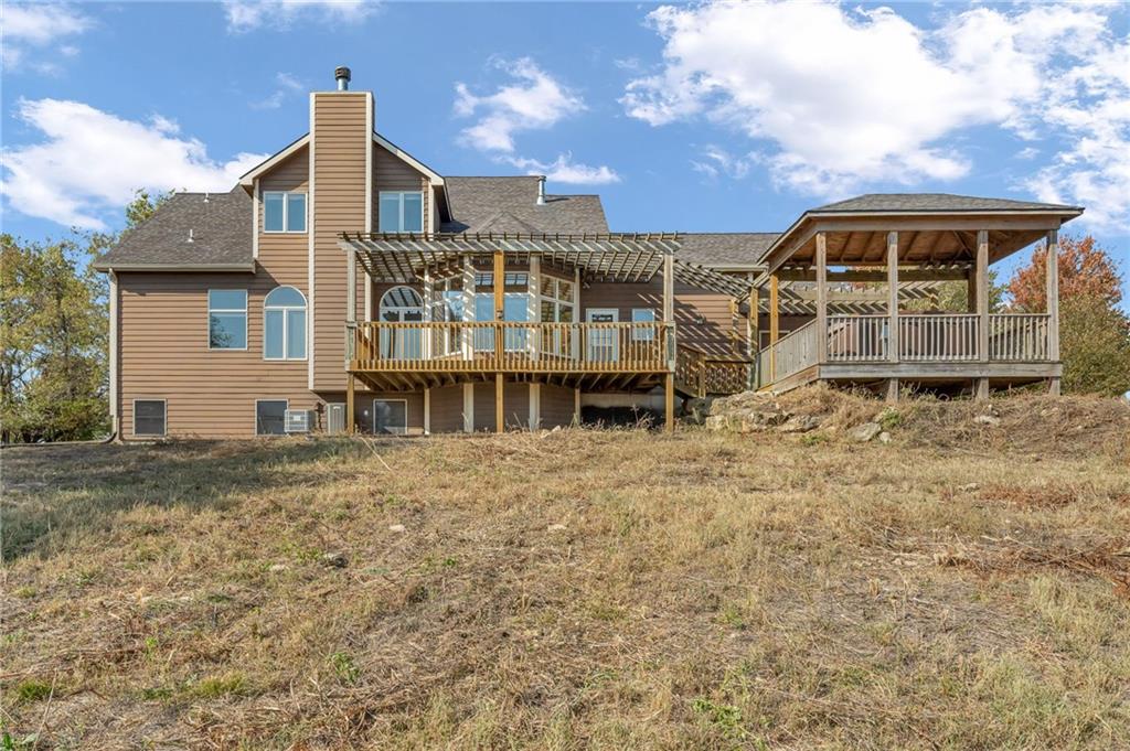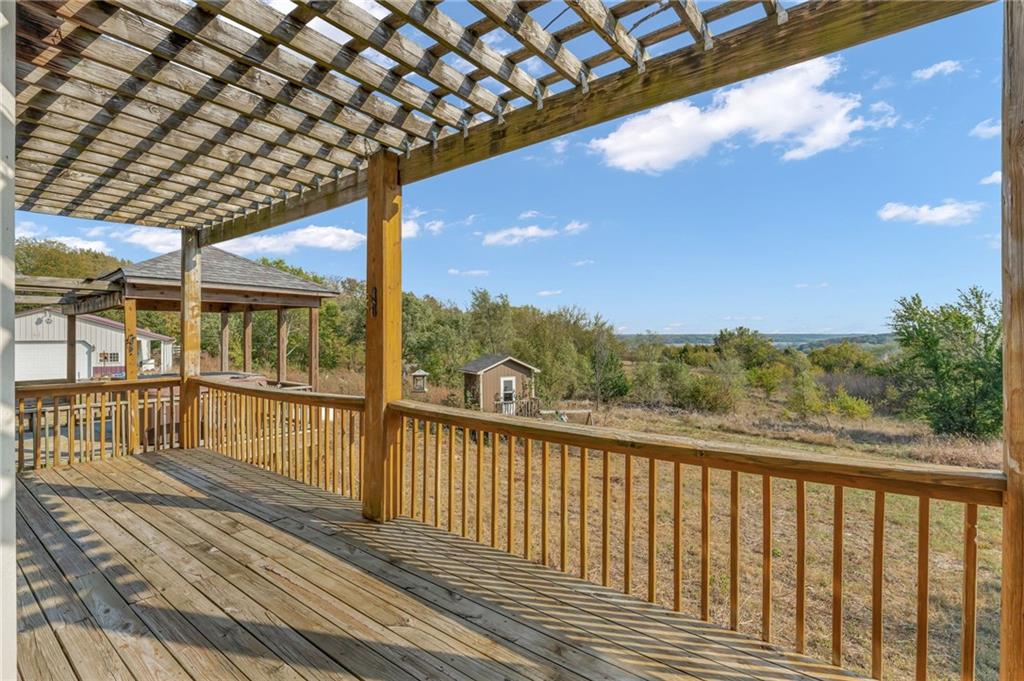 SWEAT EQUITY diamond! Dreaming of your own country estate? Beautiful 1.5 story home on 5 acres overlooking the scenic Wakarusa Valley just south of Clinton Lake! Priced to sell & primed for your personal ideas! 5 bedrooms, 6 baths with a main floor primary suite! 2 living areas on the main floor, breakfast area with stunning views overlooking the valley & kitchen overlooking the expansive deck & separate large dining room for hosting. Additional living area on the upper level perfect for a media room/home office or playroom. Tons of storage space on the lower level, rec room & more! 30x60 Morton outbuilding with treed yard & landscaping opportunity galore! Property is being sold AS-IS.