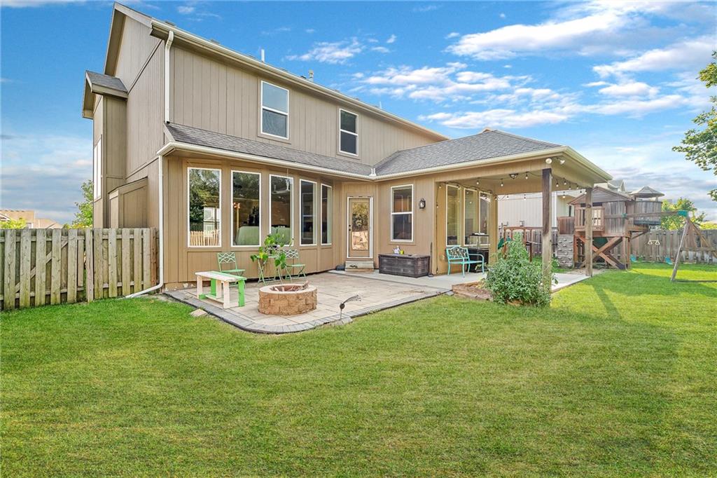 MUST SEE ** STALEY High School ! ** Only 8 years young with *PRIVATE Backyard!** Stunning, natural light-filled 4-bed home with a truly private, treed backyard that backs to open farmland greenspace — no rear neighbors. The covered patio, can easily be screened in, overlooks a patio and fire pit area perfect for year-round entertaining. The heart of the home is an entertainer’s kitchen with an extra-large island, abundant counter space, granite countertops, an extra-large coffee bar, and a HUGEEE walk-in pantry with slide-out shelving PLUS a drop zone right off the garage! Spacious rooms, wide hallways, and closets galore provide everyday comfort and organization. Upstairs laundry and a large primary suite with oversized closet and spa-like shower complete the thoughtful layout. Finishings feel like new & shoes have NEVER been worn inside! Includes a 3-car garage with added electrical hookups, built-in shelving + sprinkler system. Unfinished Basement includes an additional 1,064 sq ft to make it your own with hookups for future bathroom & plenty of space for another bedroom or two! Total sq ft including unfinished = 3860 sq ft. Community amenities include pool, park, and two stocked ponds. Did we mention the location!? 10-15 minutes from everything you need — schools, shopping, entertainment, airport, downtown and more!